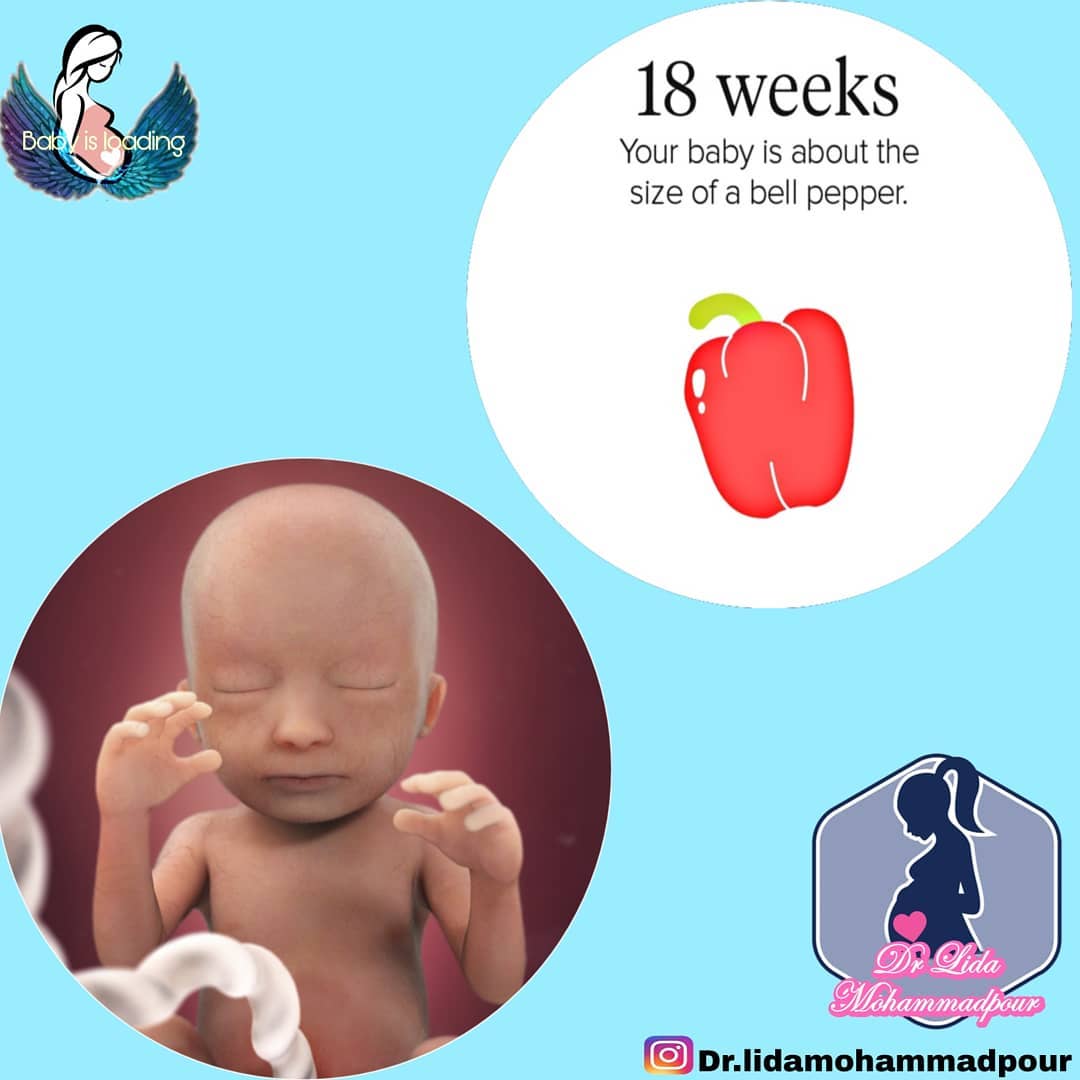 . #هفته_هیجدهم_بارداری جنین اندازه ی فلفل دلمه😍 در این سن حاملگی گوشهای جنین شما در محل نهایی خود قرار گرفته و ممکن است نمایان شدن آنها از دو طرف سر شروع شود.حواس جنین در هفته هجدهم بارداری به سرعت در حال کامل شدن است.جنین شما ممکن است شروع به شنیدن صدای شما کند. از سوی دیگر چون استخوانهای گوش داخلی و همچنین پایانههای عصبی از گوش تا مغز شکل گرفته است با شنیدن صدای بلند ممکن است تکان بخورد. جنین در این هفته از بارداری میتواند صداهایی مانند ضربان قلب و نیز صدای جریان یافتن خون در بندناف خودش را حس کند ومهارت خمیازه کشیدن را به دست می اورد. چشم های جنین شما اکنون رو به جلو است و ممکن است نور را تشخیص دهدو مغز آمادگی آغاز پردازش صداهایی را پیدا می کند که توسط گوش دریافت و فرستاده میشود. پوست هنوز به اندازهای نازک است که رگهای خونی از پشت آن دیده می شوند. اگر جنین شما دختر است رحم و لولههای فالوپ او شکلگرفته و در محل نهایی خود قرار دارند. اگر جنین شما پسر است در هفته ۱۸ بارداری اندامهای جنسی او قابلمشاهده هستند. برخی از جنین ها ممکن است سکسکه کنند. اما شما آنها را نمیشنوید، زیرا نای او به جای هوا توسط مایع پر شده است، اما در چند هفتۀ آینده که جنین بزرگتر میشود، ممکن است زمانی که سکسکه میکند قادر به احساس حرکات ریتمیک او در داخل شکم خود باشید. کیسههای کوچک هوا که به آلوئول معروف هستند، شروع به شکلگیری در ریهها میکنند و تارهای صوتی نیز گسترش مییابند. #سونوگرافی #آنومالی (بررسی دقیق اعضای بدن) در این سن حاملگی انجام می شود. مصرف قرص آهن،مولتی ویتامین،کلسیم و #ویتامین_د تحت نظر پزشکتان فراموش نشود.