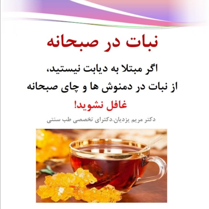 🌺از نظر طب ایرانی نبات یک معجزه می تواند باشد. مانع از پیری شده و اثرات سریع در درمان دارد.در ضمن ملین است و در بیماریهای ریه و کاهش نفخ معده و روده موثر است. پس از این به بعد به جای نگهداری آبنبات و شکلات در کیفمان چند حبه نبات بگذاریم! 💠برای آموزش صحیح مطالب از اول پیچ مطالب رو مطالعه بفرمایین. مطالب به ترتیب قرار داده شده است سالم و تندرست باشید🌿 #زندگی_سالم #سلامتی #خوردنی #مزاج #غذای_سالم #طب_سنتی #طب_ایرانی #سلامتی #تندرستی #طب_ایرانی #نبات