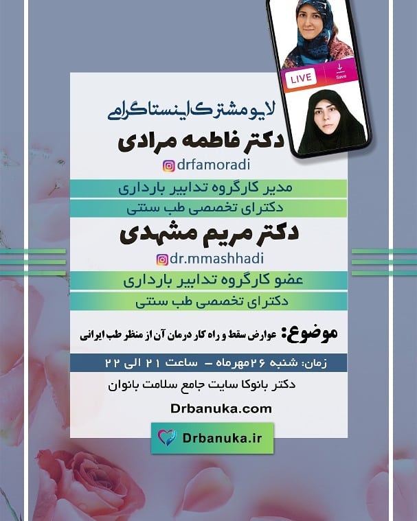 به نام خدا #لایو_فردا را با موضوع #عوارض_سقط در خدمت صفحه #دکتر_بانوکا خواهم بود. #درمان_عوارض_سقط #طب_سنتی_ایران #طب_ایرانی @drbanuka.ir @dr.mmashhadi