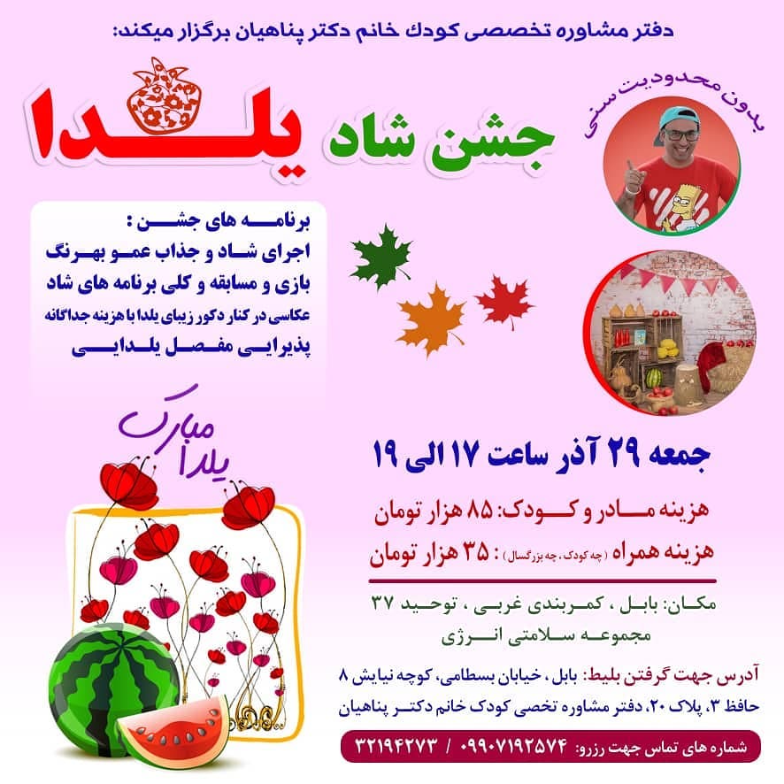 🍉همراهان همیشگی پیشاپیش فرا رسیدن شب یلدای دوست داشتنی رو صمیمانه تبریک عرض میکنیم🍉 🍉 بی صبرانه منتظرتونیم که مثل همیشه کنار هم بهترین و شادترین ساعات رو تجربه کنیم😊🍉 💓 😍روش های رزرو کردن👇 ۱. پیام دادن به دایرکت ۲. تماس با شماره های : 09907192574 _ 32194273 ۳. مراجعه حضوری @samaneh.panahian 👌 بلیط غیرحضوری نیز داده میشه👌 #سمانه_پناهیان #روانشناس_کودک #یلدا #جشن_یلدا #اولین_برگزارکننده_کارگاههای_تخصصی_مادروکودک_دراستان_مازندران