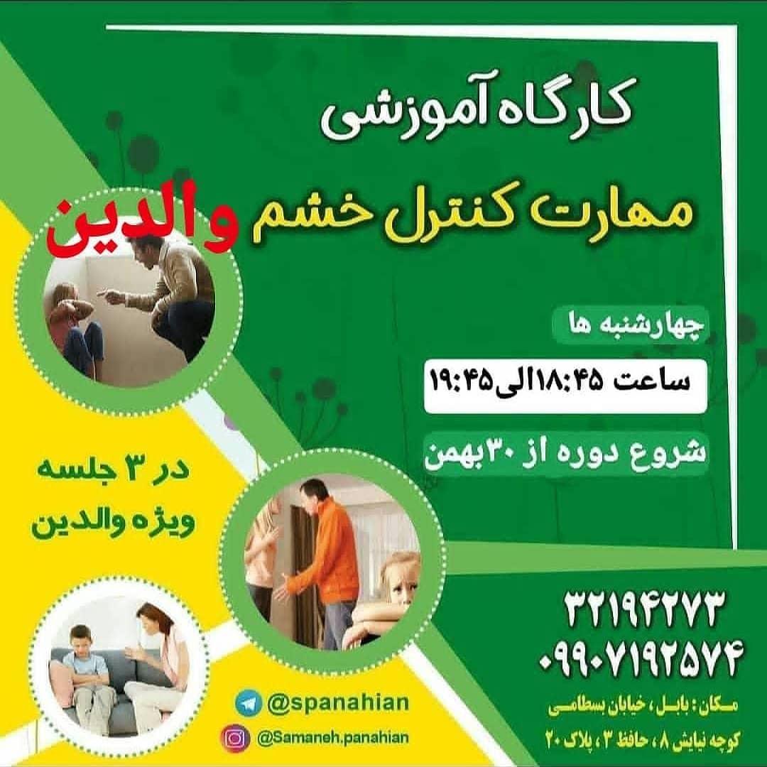 😡😡کارگاه مهارت مدیریت خشم والدین😊 🔷 ۳جلسه 🔸چهارشنبه ها، ساعت ۱۸:۴۵الی۱۹:۴۵ شروع از ۳۰ بهمن 💰هزینه دوره به ازای هر والد: ۶۰هزار ☎️09907192574 32194273 @samaneh.panahian #دکتر_سمانه_پناهیان #روانشناس_کودک #دارنده_مجوز_رسمی_از_سازمان_نظام_روانشناسی_و_مشاوره_کشور