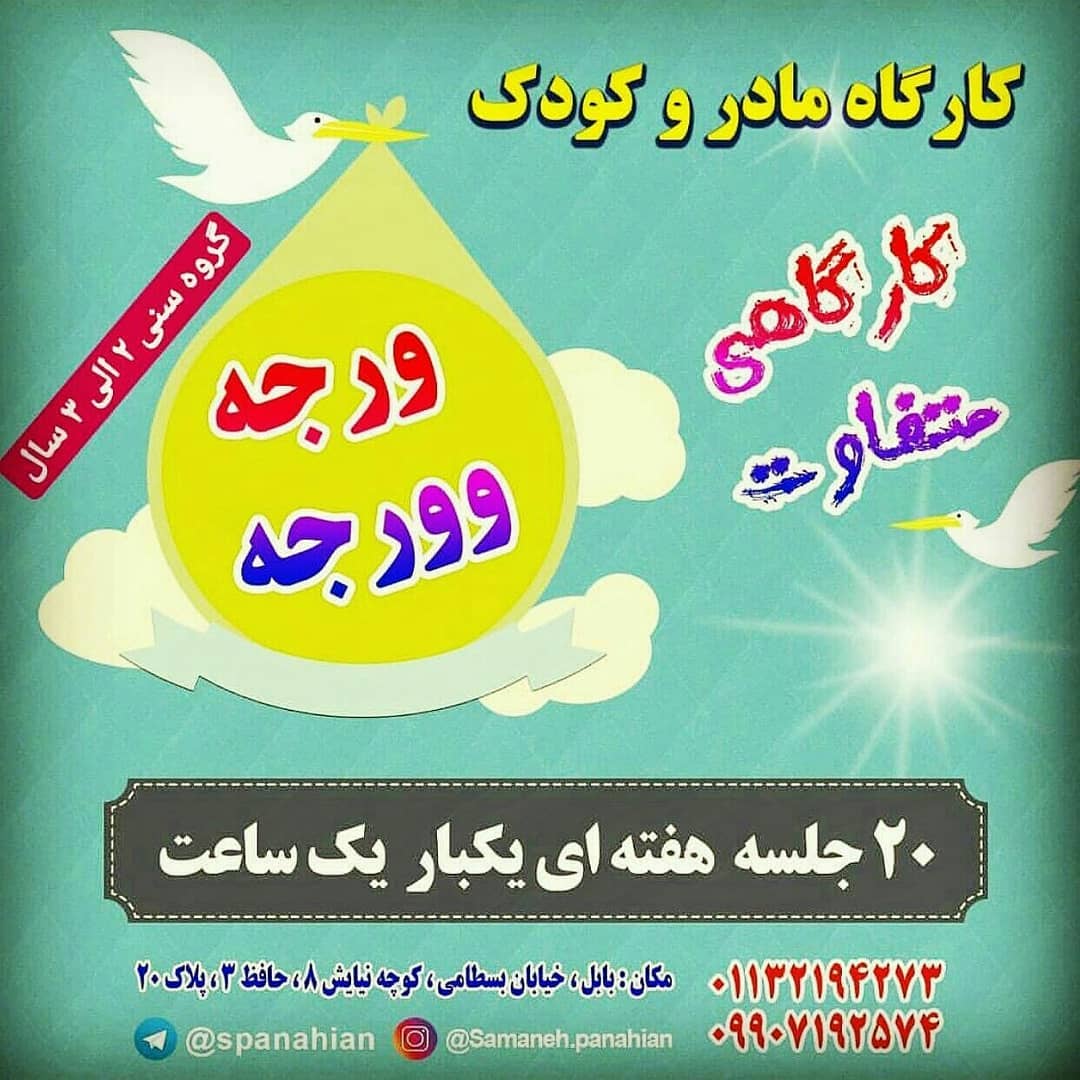😍 کارگاه تخصصی مادر و کودک فرشته کوچولوهای یک الی دو ساله شروع دوره جدید👇 🔷 سه شنبه ها،ساعت ۱۴ الی ۱۵، شروع از ۶ آذر ماه 👶🏻 این کارگاه شامل انواع فعالیت های مناسب برای تقویت ادراکات حسی کودک از جمله ادراک بینایی ، شنوایی ، لامسه و بازی های مربوط به دقت، تمرکز، حافظه، هوش کلامی و بازی های مربوط به تقویت سیستم وستیبولار می باشد. 🌹 این کارگاه ضمن فراهم آوردن تحریکاتی مثبت برای کودک، برای مادر هم تنوعی خاص و آموزنده به همراه دارد. 💓همچنین در این کارگاه، همه کودکان، در طرح پایش نیز قرار خواهند گرفت💗 ❇️ آدرس: مازندران، بابل، خیابان بسطامی، کوچه نیایش۸، حافظ۳، پلاک ۲۰ ☎️09907192574 32194273 @samaneh.panahian #کارگاه_مادروکودک_مازندران_بابل #سمانه_پناهیان#روانشناس_کودک#اولین_برگزارکننده_کارگاه_های_تخصصی_مادروکودک_در_استان_مازندران #مادروکودک#زیر_یک_سال#یک_ساله#دو_ساله#هوش#پرورش#تقویت #توانمندی#کارگاه#بازی#هیجان#شادی#آموزش#مازندران#بابل