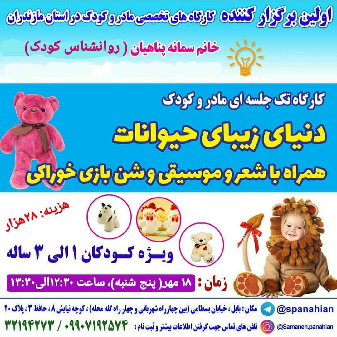 😊کارگاه تک جلسه ای مادروکودک 🐇🐼🦁دنیای زیبای حیوانات🐴🐈 شماره تماس جهت رزرو 👇 32194273 09907192574 @samaneh.panahian #کارگاه_مادروکودک_مازندران_بابل