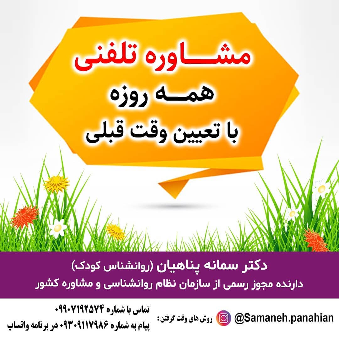 دکتر سمانه پناهیان/ روانشناس کودک و نوجوان اولین برگزار کننده کارگاه های مادر و کودک در استان مازندران آغاز فعالیت از سال 88 مازندران، بابل، کمربندی شرقی، گلستان 15، مجموعه تخصصی روانشناسی کودک و نوجوان
