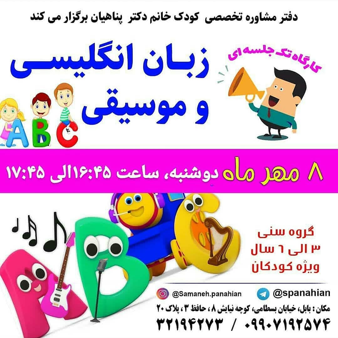 شروع دوره جدید کارگاه هوش هشتگانه کودکان ۲ الی ۳ سال 🌟گروه اول: از ۱۰ خرداد، شنبه ها ساعت ۱۸:۴۵ الی ۱۹:۳۰ 🌟گروه دوم: از ۱۲ خرداد، دوشنبه ها، ساعت ۱۹:۱۵ الی ۲۰ یکی از گروه ها بر حسب تمایل میتونید انتخاب کنید در حال حاضر به دلیل محدود شدن تعداد اعضای هر گروه و به دلیل نیاز به فاصله زمانی بیشتر برای ضدعفونی کردن محیط و وسایل، تایم هر کارگاه از یک ساعت به ۴۵ دقیقه تغییر پیدا کرده، انشاالله در آینده به یک ساعت میرسه شماره های تماس جهت ثبت نام: 09907192574 32194273 مازندران، بابل، خیابان بسطامی، کوچه نیایش ۸، حافظ۳، پلاک ۲۰ @samaneh.panahian @samaneh.panahian