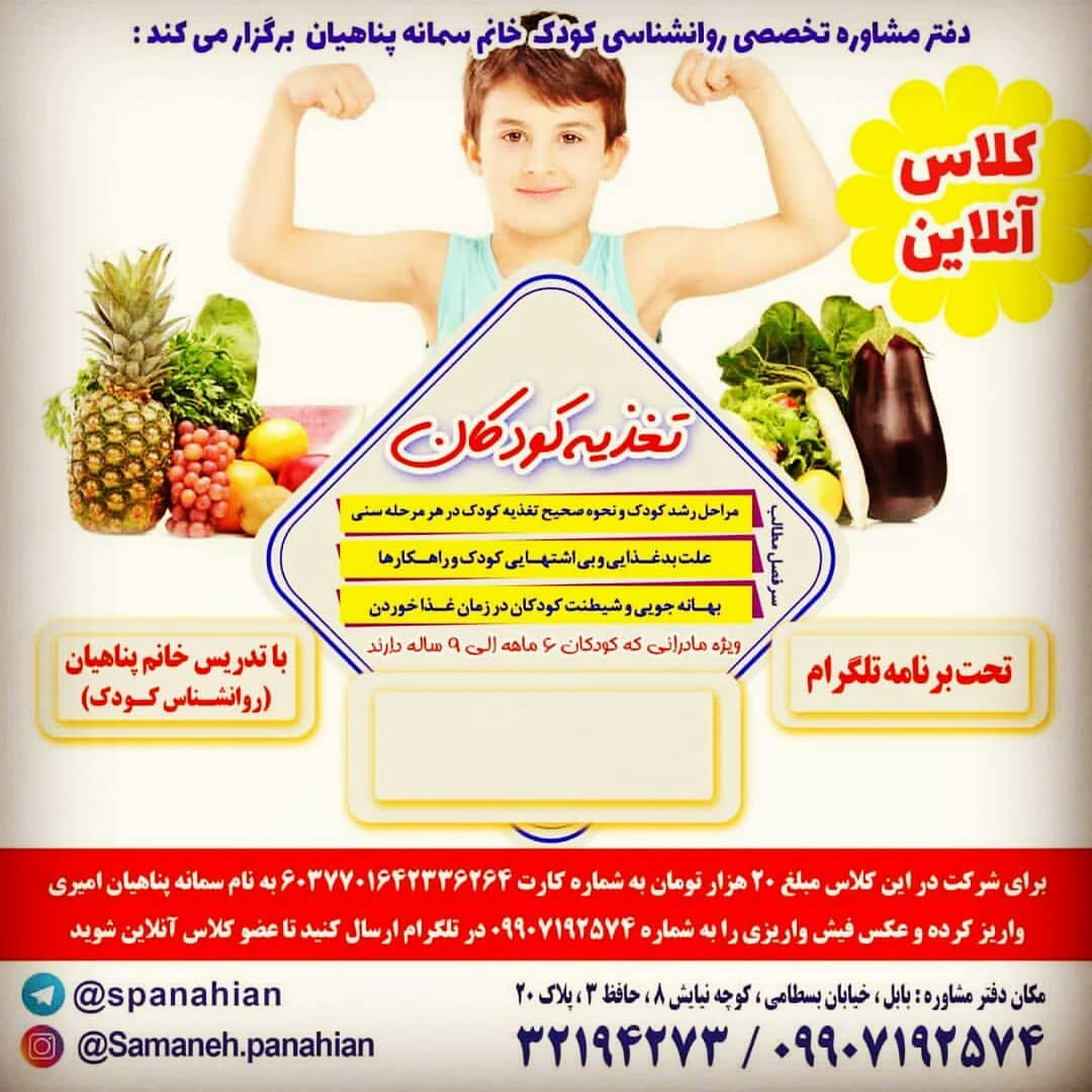 🍔 کلاس آنلاین تغذیه کودکان🍔 ویژه والدینی که فرزند ۶ ماهه الی ۹ ساله دارند مطالب کلاس کاملا شفاف و واضح و ۱۰۰ درصد کاربردی و مفید خواهد بود. هزینه : ۲۰ هزار ☎️09907192574 32194273 @samaneh.panahian #سمانه_پناهیان #روانشناس_کودک