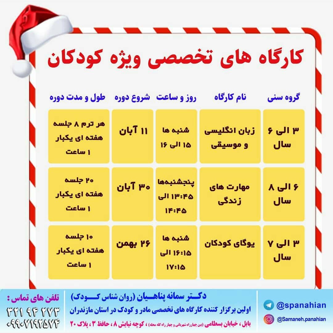 کارگاه های تخصصی ویژه کودکان😃 ✨ شماره های تماس جهت گرفتن اطلاعات بیشتر و ثبت نام: ☎️09907192574 32194273 @samaneh.panahian #دکتر_سمانه_پناهیان #روانشناس_کودک #اولین_برگزارکننده_کارگاههای_تخصصی_مادروکودک_در_استان_مازندران #دارنده_مجوز_رسمی_از_سازمان_نظام_روانشناسی_و_مشاوره_کشور