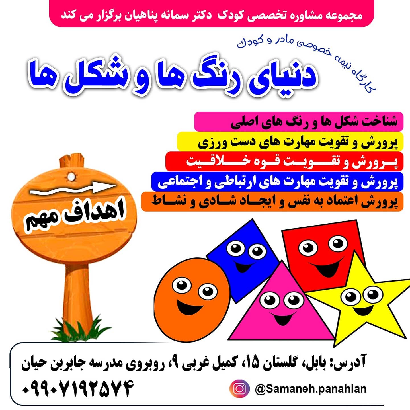 دکتر سمانه پناهیان/ روانشناس کودک و نوجوان اولین برگزار کننده کارگاه های مادر و کودک در استان مازندران آغاز فعالیت از سال 88 مازندران، بابل، کمربندی شرقی، گلستان 15، مجموعه تخصصی روانشناسی کودک و نوجوان