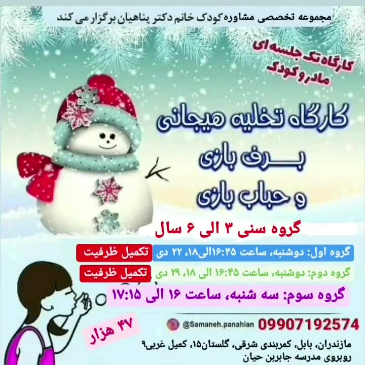 🤗 هر سه گروه تکمیل ظرفیت شد 🤗 🌹 سپاس از استقبال و اعتمادتون 🌹 مازندران، بابل، گلستان۱۵، کمیل غربی۹، روبروی مدرسه جابربن حیان @samaneh.panahian @samaneh.panahian #دکتر_سمانه_پناهیان #روانشناس_کودک #کارگاه_مادروکودک_بابل #برف_بازی #تخلیه_هیجانی #حباب_بازی #کارگاهمادروکودک #بابل#مازندران#مازندران_بابل#کلاس#کارگاه#کلاس_مادروکودک#کارگاه_کودک#کارگاه_کودکان#کلاس_کودک#کلاس_کودکان_بابل #کارگاه_مادروکودک #اطلاعیه #بازی_کودک#بازی_کودکان #play #child #child_play