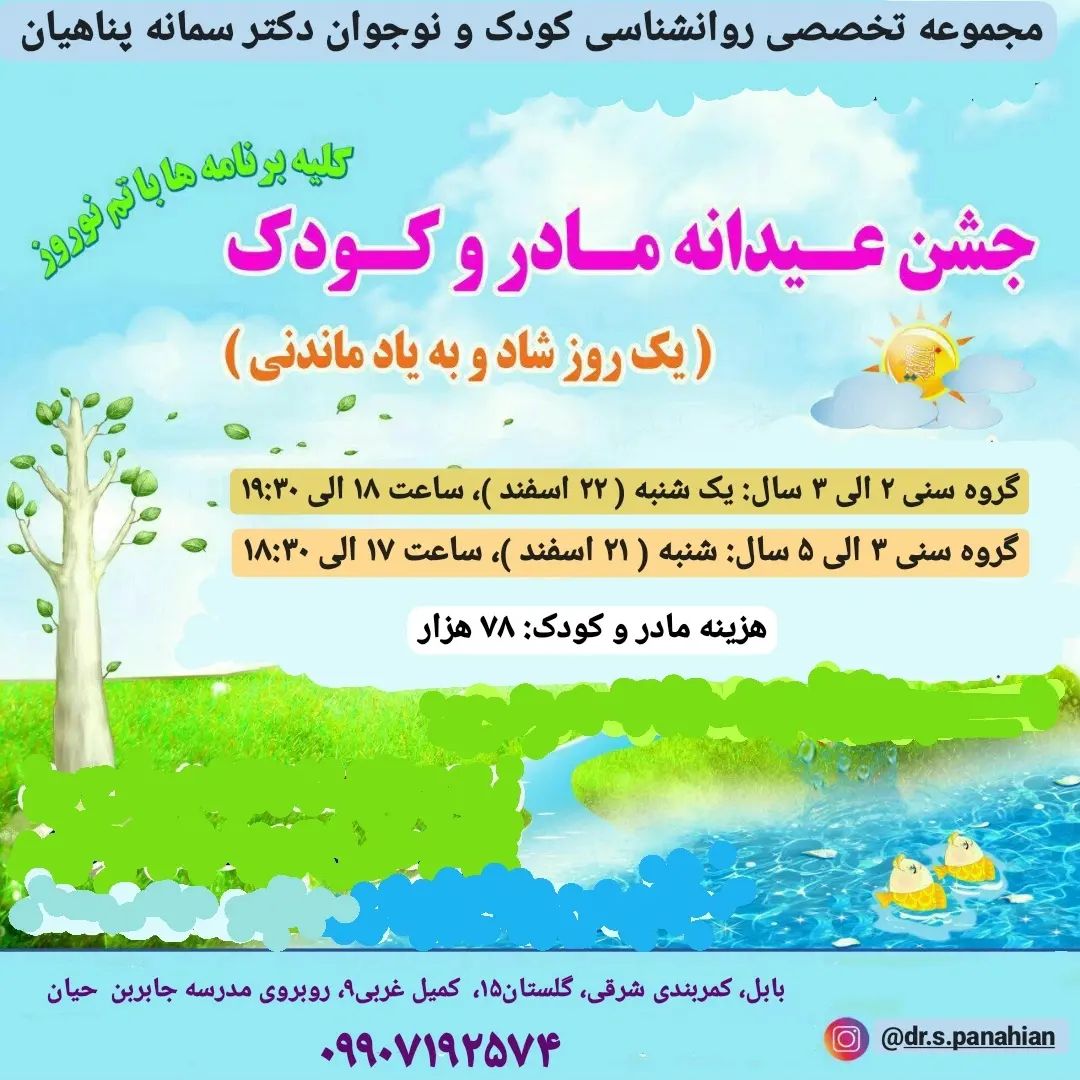 جشن عیدانه هم با توجه به تقاضای شما عزیزان برنامه ریزی شد😊 همه برنامه ها با تم نوروز👇 🔹️ بازی موسیقی 🔹️ قصه و نمایش 🔹️ رنگ آمیزی تخم مرغ 🔹️گیفت نوروز 🔹️کاشت سبزه 🔹️بازی های نمادین چهارشنبه سوری 🔹️زرورق پرونی 🔹️پذیرایی ساده @dr.s.panahian @dr.s.panahian #جشن_نوروز #مادروکودک #کودکان #نوروز۱۴۰۱ #جشن_نوروز_۱۴۰۱