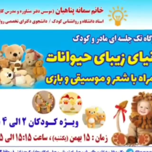 😊کارگاه تک جلسه ای مادروکودک 🦁دنیای زیبای حیوانات،۱۵ بهمن۹۶ ❣تکرارمجدد این کارگاه👇 ۲۹بهمن ماه(یک شنبه)،ساعت ۱۵:۱۵الی ۱۶:۱۵ شماره تماس جهت رزرو دوره بعدی👇 09907192574 @samaneh.panahian #کارگاه_مادروکودک_مازندران_بابل