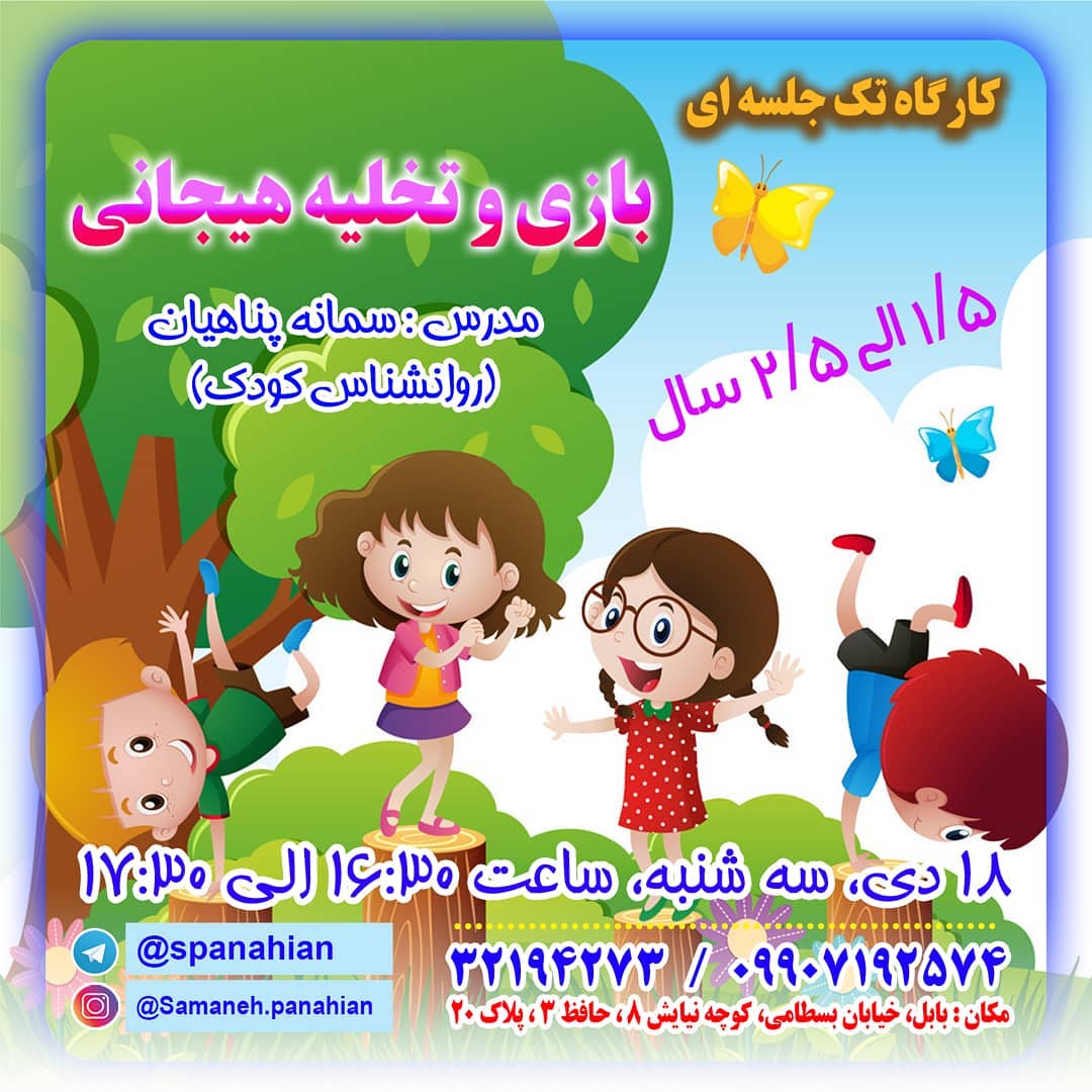 😍 کارگاه تک جلسه ای مادر و کودک👌 💫بازی و تخلیه هیجانی 💥 🕟 سه شنبه، ساعت ۱۶:۳۰ الی ۱۷:۳۰ 🎈گروه سنی ۱/۵ الی ۲/۵ سال: ۱۸ دی 🎈گروه سنی ۲/۵ الی ۴ سال: ۲۵ دی هزینه: ۲۸ هزار ☎️ 09907192574 32194273 بابل، خیابان بسطامی، نیایش۸، حافظ۳، پلاک ۲۰ @samaneh.panahian @samaneh.panahian #تخلیه_هیجانی #بازی #سمانه_پناهیان #روانشناس_کودک