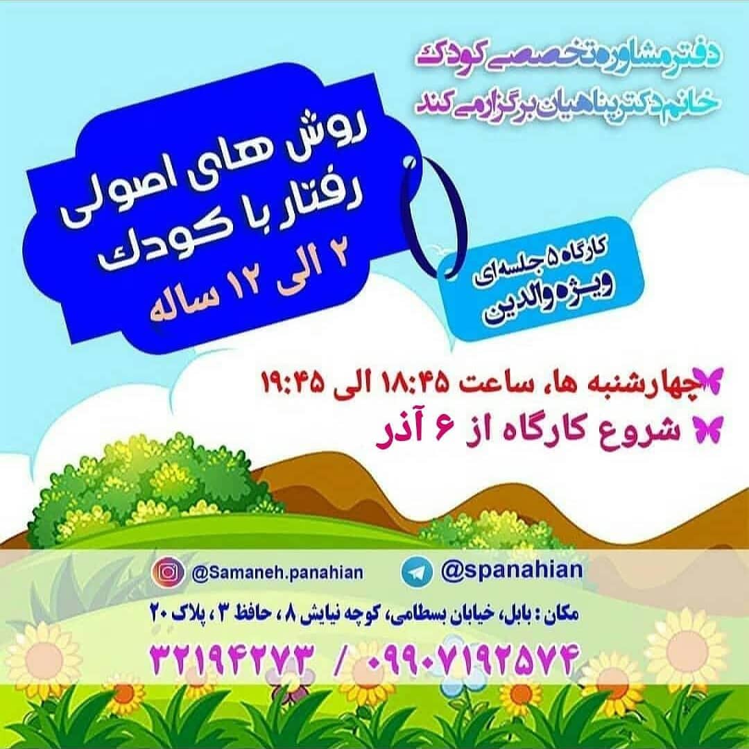 🌟کارگاه های تخصصی مادر و کودک در دفتر مشاوره تخصصی روانشناسی کودک ✨آدرس: بابل، خیابان شهید بسطامی، کوچه نیایش ۸، حافظ۳، پلاک ۲۰ ☎️ ۳۲۱۹۴۲۷۳ 09907192574 @samaneh.panahian @samaneh.panahian
