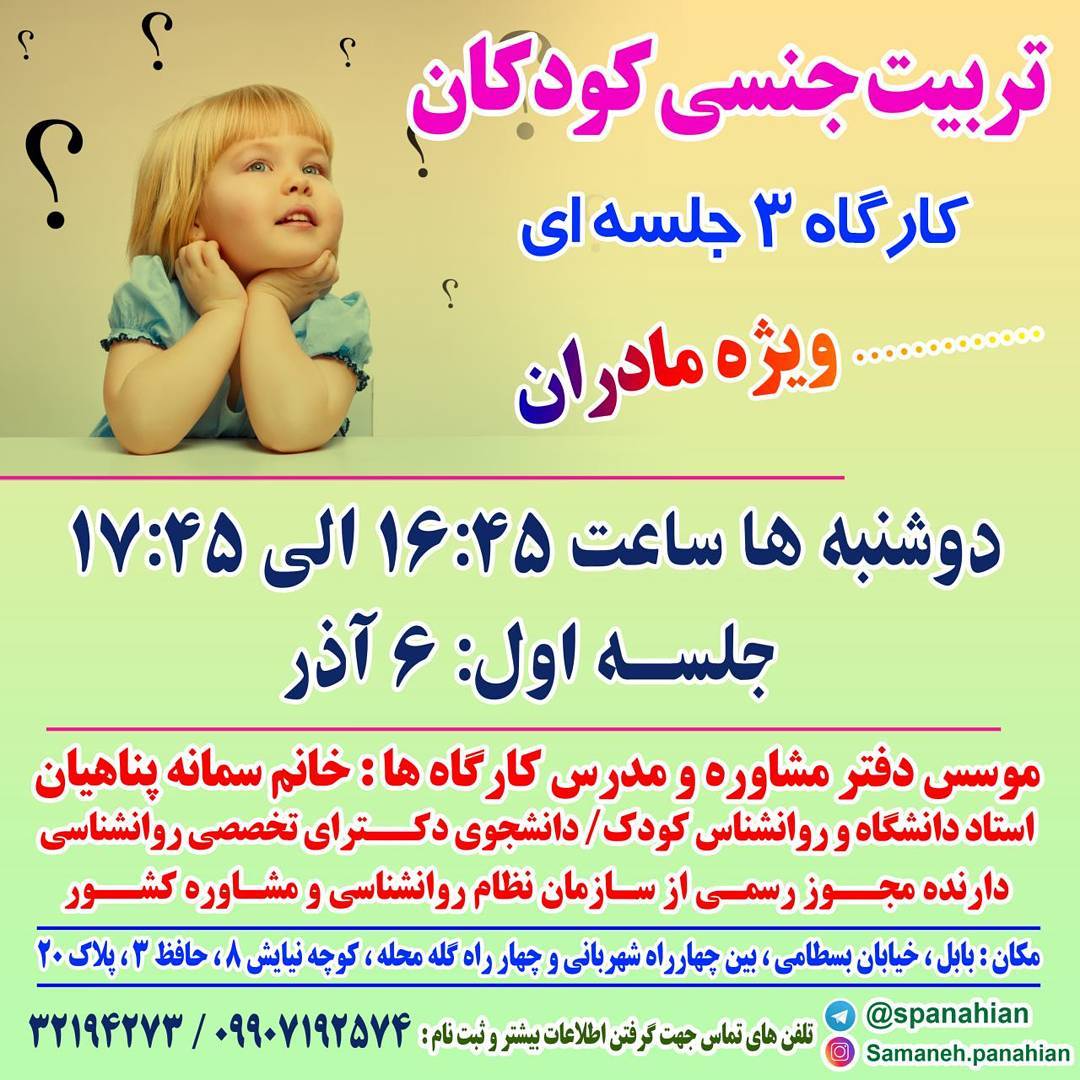 دکتر سمانه پناهیان/ روانشناس کودک و نوجوان اولین برگزار کننده کارگاه های مادر و کودک در استان مازندران آغاز فعالیت از سال 88 مازندران، بابل، کمربندی شرقی، گلستان 15، مجموعه تخصصی روانشناسی کودک و نوجوان