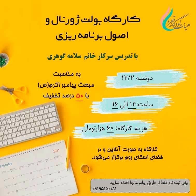 کارگاه بولت ژورنال و اصول برنامه ریزی با تدریس سرکار خانم گوهری دوشنبه دوم اسفندماه 📆 زمان: ساعت ۱۴ الی ۱۶ 🕑 هزینه کارگاه: به مناسبت مبعث پیامبراکرم صلوات الله علیه با ۵۰ درصد تخفیف، ۶۰ هزار تومان 👌 کارگاه به صورت مجازی و در محیط اسکای روم برگزار میگردد🌱 ثبت نام فقط از طریق پیامرسانها: 09195150181 صفحه ما در پیامرسان بله و ایتا👇 https://ble.ir/ghatre97 Eitaa.com/ghatre97 #کارگاه_بولت_ژورنال #بولت_ژورنال #کارگاه_مجازی #برنامه_ریزی#کارگاه_برنامه_ریزی