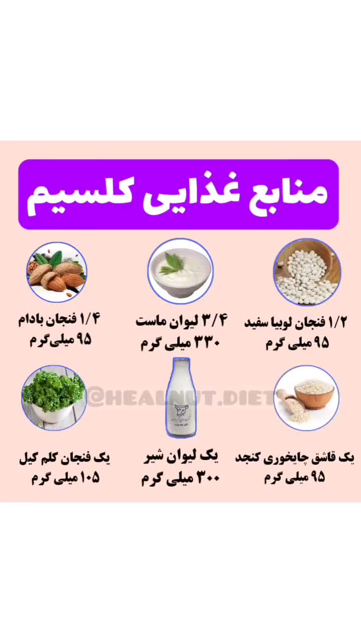 ✅ شیر و ماست نسبت به اندازه هاشون مقدار خیلی زیادتری کلسیم دارن. @healnut.diet پس برای تامین کلسیم🥛 بدن در کنار منابع گیاهی باید مصرف لبنیات هم داشته باشید ✅ از طرفی جذب کلسیم منابع گیاهی کمتر هست تو بگو در روز چه قدر ماست یا شیر میخوری؟ @healnut.diet @healnut.diet . . . . . . . . . . . . . #کلسیم #کلسیم_بدن #کلسیم_مصرف_کنید #منبع_کلسیم #رژیم_گیاهخواری #پوکی_استخوان #سلامت_استخوان #پوکیاستخوان #پوکی_استخوان_و_ساییدگی_مفاصل #پوکی_استخوان_در_زنان