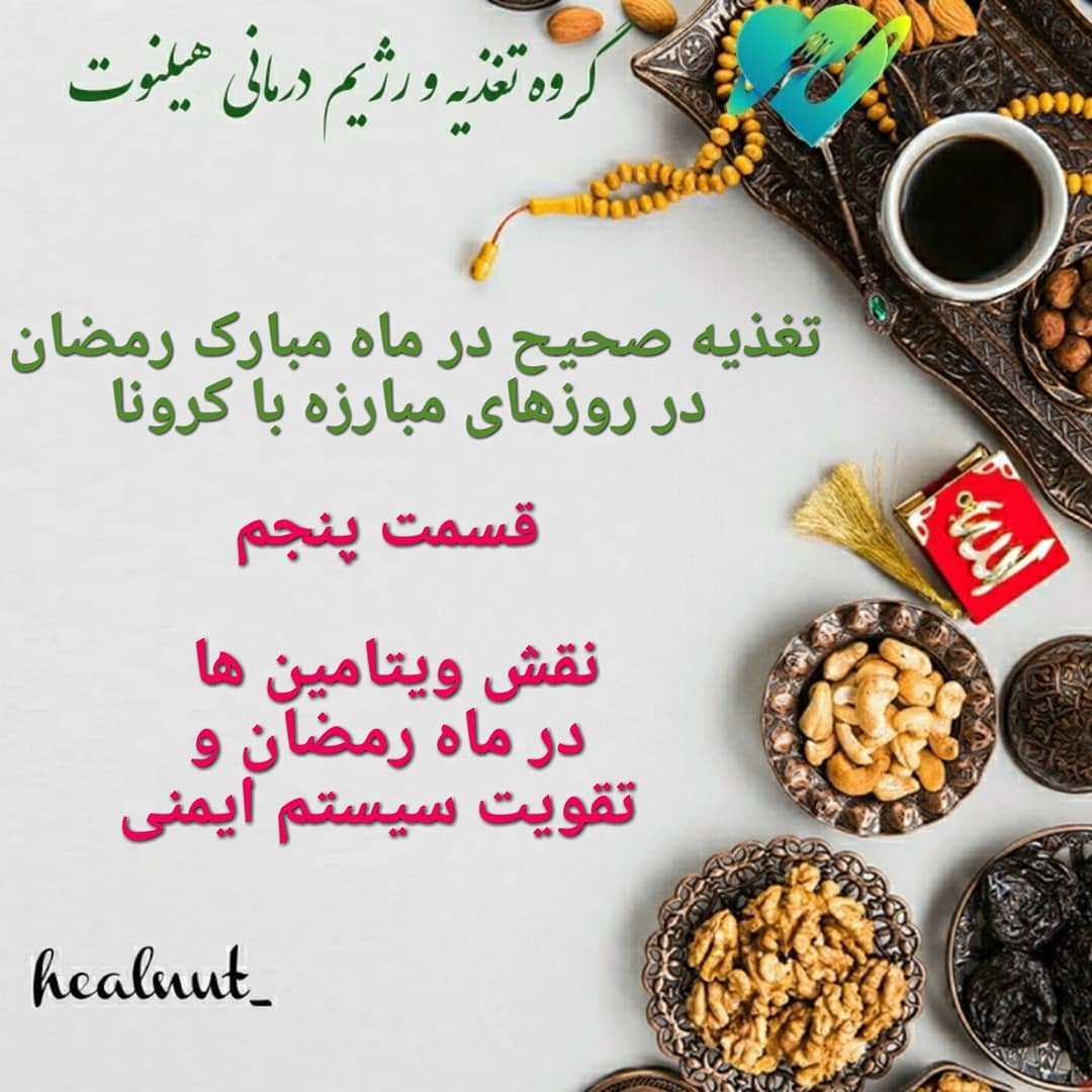 📌 نقش ویتامین ها در ماه رمضان📌 در ادامه پست قبل میخوایم امروز اشاره کنیم به نقش ویتامین E در تقویت سیستم ایمنی و اینکه حتما در ماه رمضون امسال اون رو در وعده های افطار تا سحر بزارید منابع غذایی ویتامین E: 📌آجیل 📌فندق 📌بادام 📌گردو دقت کنید بین افطار تا سحر میتونید چیزی حدود ۱۰ عدد از مخلوط اینهارو یا ۶ عدد از یک نوع خاصشون رو مصرف کنید. در ادامه به نقش ویتامین های دیگر در این ماه مبارک میپردازیم. با ماباشید @healnut_