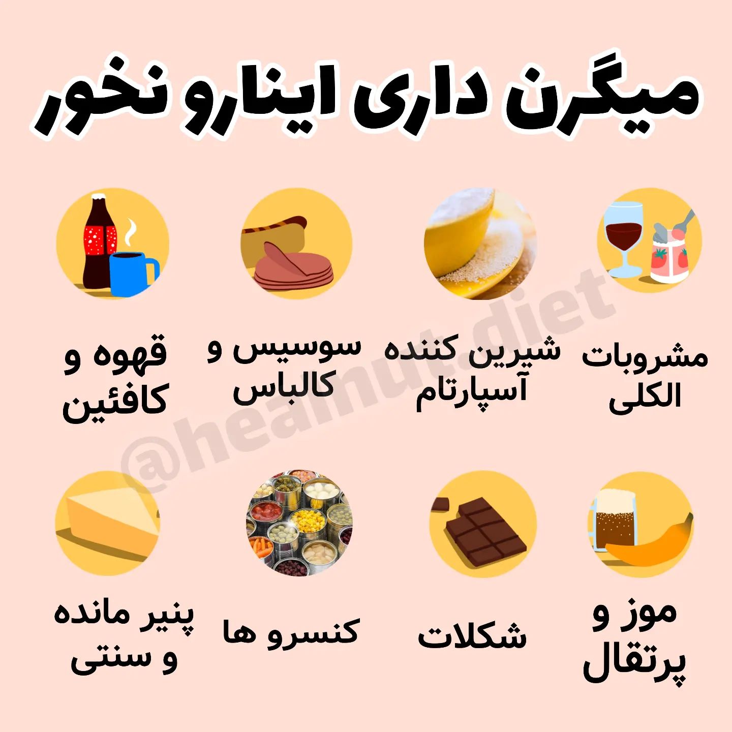 ✅ میدونستید تغذیه میتونه به کاهش این سردرد هاتون خیلی کمک کنه؟ @healnut.diet موارد توی پست رو رعایت کنید حتما 😍 . . . . . . . . . . . . . . . . #میگرن #میگرن_درمان_دارد #میگرن_عصبی #میگرن_سردرد #میگرن_چشمی #میگرن_شدید #میگرن_قاعدگی