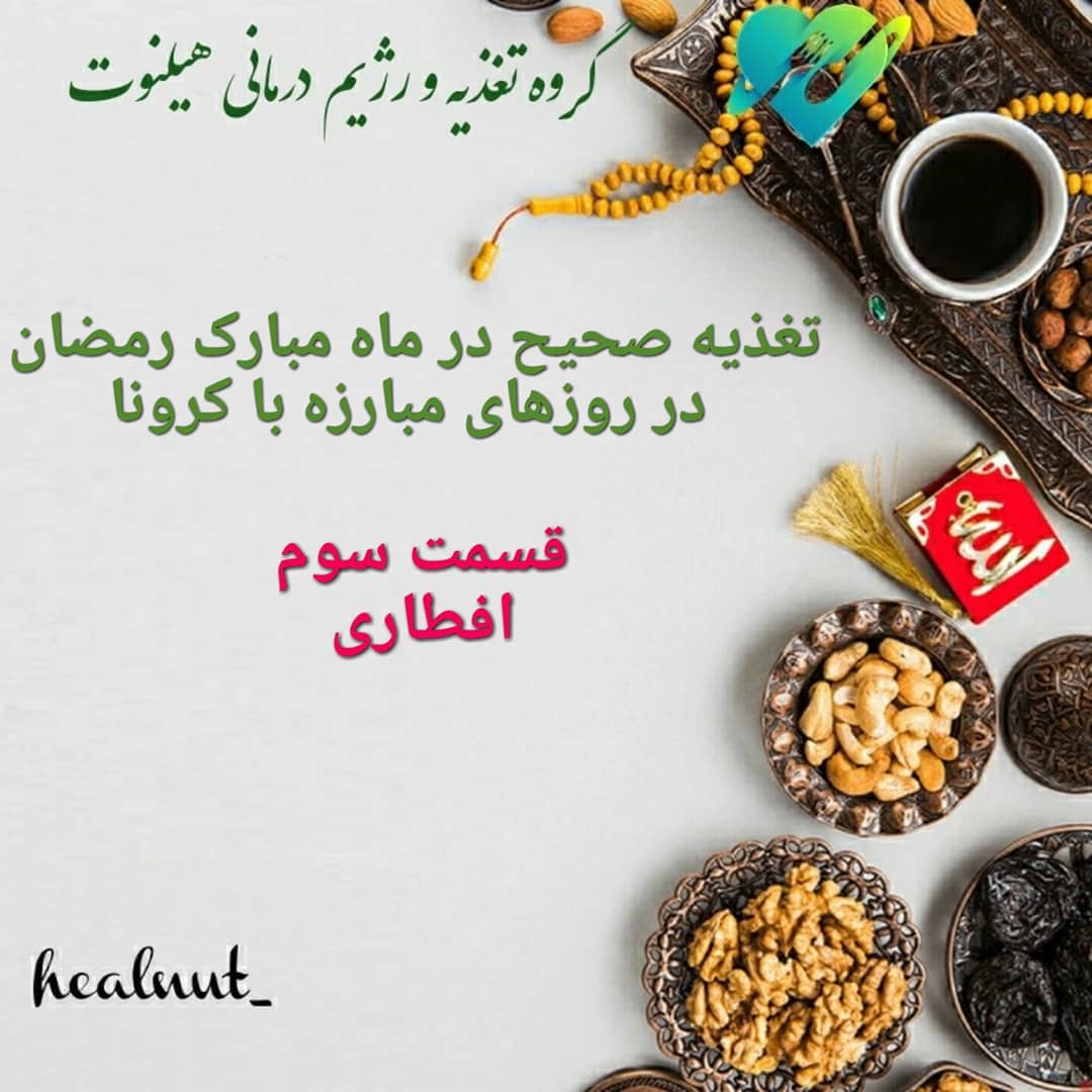📌وعده غذایی افطار📌 این وعده غذایی در واقع خیلی مهم هست، چرا؟ چون بعد۱۶ تا۱۸ ساعت گرسنگی و ناشتایی میخوایم اقدام به غذا خوردن بکنیم. خیلی از عزیزان تا اذان میشه و الله اکبر رو میگن، سریع شروع میکنن تا جایی که میتونن میخورن. خب این کاملا اشتباهه، چون اگه دقت کنید حال خودشونم بد میشه. خب حالا ترتیب خوردن مواد غذایی چجوریه: ۱.باید در وعده افطار ابتدا با مصرف ۱ لیوان چای کمرنگ یا آب گرم یا شیر گرم با خرما افطار کنید. ۲. سپس میتونید بعد از گذشتن چند دیقه، یک پیاله فرنی یا شیر برنج یا حلیم بخورید. ۳. بعد از اون هم چند لقمه ای نان و پنیر( در حد ۲ الی ۳ لقمه) ۴. بعدش میتونین بعد۱ ساعت شام بخورید، اگر میبینید که با خوردن شام دیگه اشتها به خوردن سحری ندارید، خب مقدار شامی رو که میخورید به حداقل مقدار ممکن برسونید. ۵. شما باید تا سحری به تدریج اب از دست رفته بدن خودتون رو تامین کنید ۶. استفاده از میوه های رنگی، و مخصوصا هندوانه خیلی کمک کننده هستن. 🔊🔉🔈ادامه این پست رو در استوری ها و پست های بعدی با شما به اشتراک میگذاریم.🔊🔉🔈 @healnut_ @healnut_ @healnut_ #افطاری #افطاری_ساده #افطاری_خوشمزه #افطاری_ماه_مبارک_رمضان #افطار #ماه_رمضان #ماه_رمضان_مبارک #ماه_رمضان_ماه_آرامش❤️ #ماه_رمضان🌙 #سحری #سحری🍝 #افطاری #افطاری_ساده