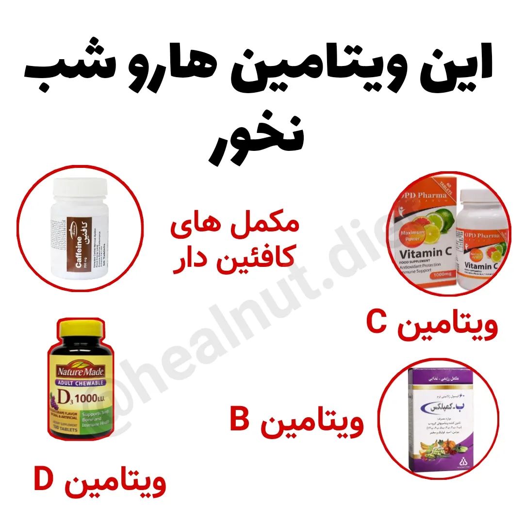 ✅ حالا علت اصلی چیه؟ 🟣 کافئین باعث ایجاد اضطراب و بی خوابی میشه 🟣 ویتامین دی در شب میتونه مقدار ملاتونین رو کاهش بده و بی خوابی بیاره 🟣 ویتامین های گروه ب، کلا انرژی زا هستن و میتونن بازم با مشکل بیخوابی ما رو روبهرو کنن 🟣 و ویتامین سی هم همینطور اگر این پست برات جالب بود حتما برام کا.منت بذار 😍🙏 یا اگر سوالی پیرامون مکمل ها داری حتما ازم بپرس . . . . . . . . . . . . . . . #ویتامین_سی #ویتامینها #ویتامینb12 #ویتامینb #ویتامین_ث #کمبودویتامین #کمخوابی #بیخوابی #بیخوابی_شبانه #پزشک_تغذیه
