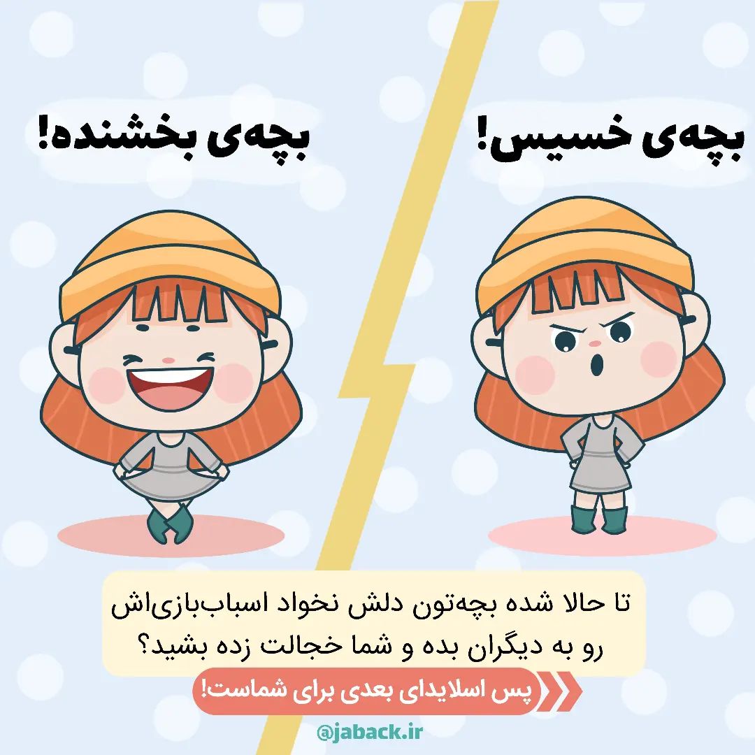 👨👩👦👨👩👧 -: "با بچه خسیس چیکااار کنیم ؟ 😥" احتمالا برای شماهم پیش اومده وسط مهمونی یه لحظه به خودتون اومدین و دیدین جیغ و داد بچه ها به هوا رفته. فرزندتون با فرزند یکی دیگ گلاویز شده سر اینکه نمیخواد اسباب بازیشو به بقیه بده. اینجور موقعا معمولا خجالت زده میشیم و به خودمون میگیم -: " کی این بچه اینقدر خسیس شد ؟ " تو این پست میخوایم بهتون بگیم اصلاااا خجالت زده نشین. و به جای برچسب "خسیس" زدن به فرزندتون باهاش یه سری تمرین انجام بدین و بخشنده بودن رو بهش آموزش بدین. شما راه های دیگه ای برای اینکار میشناسین ؟ تو کامنت برامون بنویسید. #کودک_سالم #کودک_خسیس #فرزند_پروری #رشدکودک #یادگیری_کودک #اسباب_بازی #اشتراک_اسباب_بازی #روانشناسی_کودک #والدگری #خرید_آنلاین #خرید_اسباب_بازی #پیج_کودک
