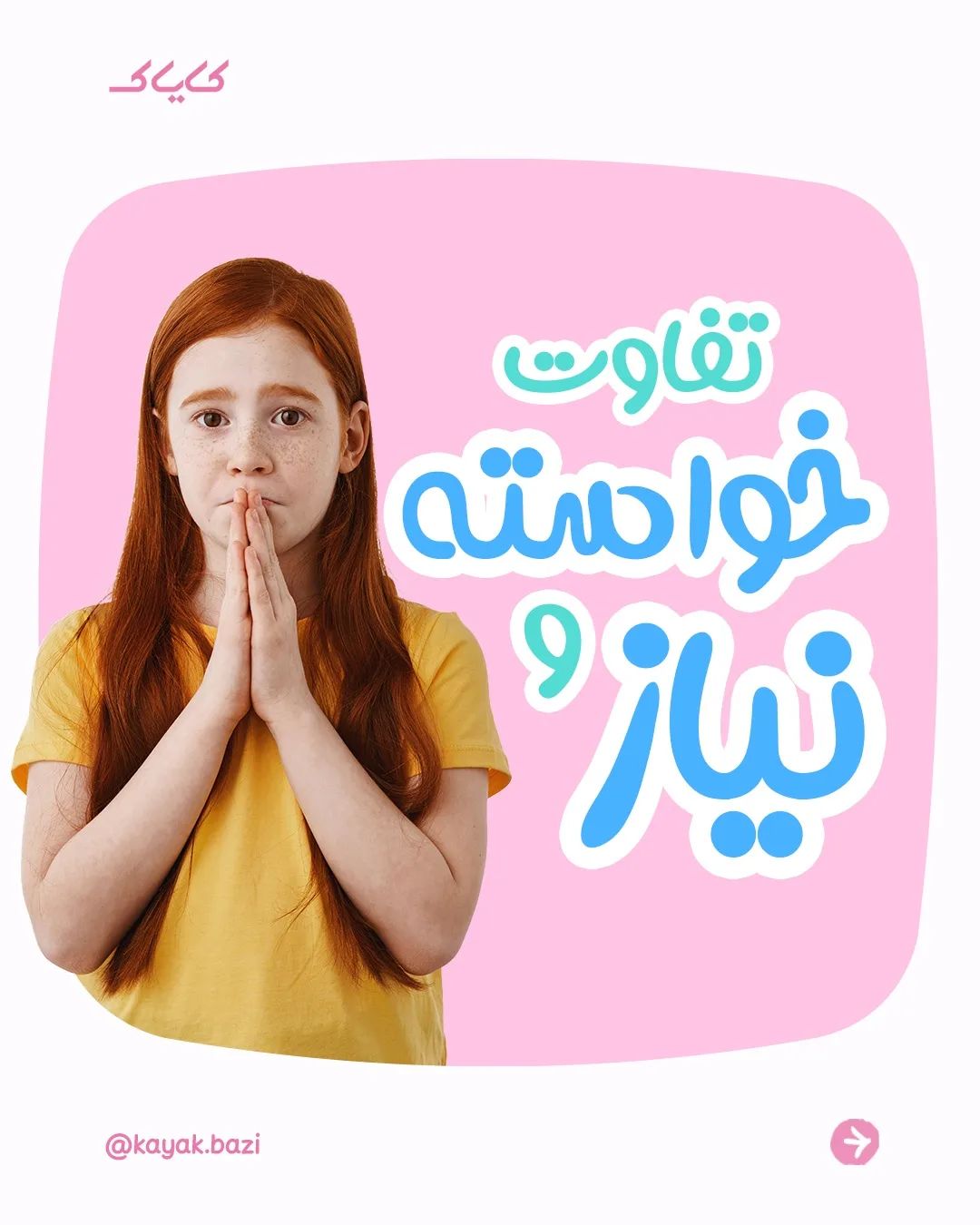 تفاوت خواسته و نیاز تو مرحله اول کارآفرینی بچه ها باید دو مفهوم خواسته و نیاز رو یاد بگیرند🤔 نیاز های بچه ها تا ۵ سالگی باید توسط والدین تامین بشه و بعد از اون به خود کودک واگذار بشه تا انگیزه کار و فعالیت در اون به وجود بیاد حالا بزن بریم تا تفاوت این دو تا رو بهت بگم 😇 #بازی_تولید #کار_آفرینی #کارآفرینی #مسئولیت_پذیری #مهارتهای_زندگی #مهارت #فرزند #فرزندپروری #فرزندپروری_اگاهانه #کایاک_بازی #مشاوره #تربیت #تربیت_فرزند #تربیت_اسلامی_کودک #تربیت_اسلامی #تربیت_فرزند #تربیت_کودک #کسب_و_کار #کودکان #کودک #خواسته #خواسته_نیاز