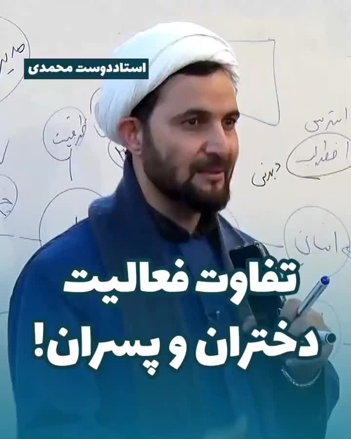 🔻تفاوت فعالیت دختران و پسران . پوست هورمونی در زنها نازک و در مردها ضخیم است، به همین دلیل فعالیتها در دختران باید سرعتی و در پسرها قدرتی باشد.🤔 یعنی تعداد فعالیتها در دخترها زیاد اما سبک و در پسر کم اما سنگین باشد. مثلاً یک دختر میتواند ۲۰۰ تا کار سبک را انجام دهد، چون مغزش با تعداد زیاد کار فعال میشود و سبک بودنش مانع خسته شدن میشود. 😇 اما برای پسران باید تعداد کم و سنگین باشد.💪 پسرهای ما بیش فعال نیستند، اما چون کار سنگین انجام نمیدهند انرژی در بدنشان باقی میماند. پسر های قدیمی این طور نبودند چون فعالیت بدنی زیاد داشتند اما سبک زندگی جدید مانند فضای مجازی و ... باعث شده که انرژی در بدنشان باقی بماند و موجب عصبی شدن شود. دختر باید لطیف و آرام اما پسر به گونهای باشد که اشاره میکنیم مثل گلوله شلیک شود.😎 مثالهایی هم در توضیحاتشان بیان میشود . . . ⭕ برای ما بنویسید شما چطور فعالیت متناسب جنیست فرزندتون براش فراهم می کنید؟ . . . 🔖حجت الاسلام دوست محمدی . 💬انتقادات و پیشنهاداتتون رو با ما به اشتراک بذارید . در شبکه های دیگر بما بپیوندید . 👈 پیام رسان بله: https://ble.ir/keraamat_ir 👈 پیام رسان ایتا: eitaa.com/keraamat_ir 👈 سایت آپارات: https://www.aparat.com/keraamat_ir . . . . . . . . .. #دوست_محمدی #مشاور #مشاور_خانواده #تربیت_جنسی #تفاوت #دخترانه #پسرانه #بازی #خانواده #جنسی