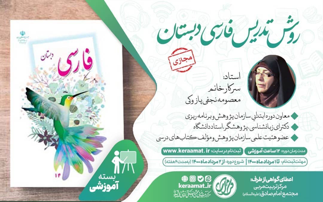 💡 *دوره مجازی روش تدریس فارسی* 🔸مدرس: سرکار خانم معصومه نجفی 🔸۱۲ ساعت آموزشی طی ۴ هفته ⛔️ شروع دوره: ۲ مرداد 📌همراه با اعطای گواهی از طرف مرکز تربیت مربی مجتمع امام صادق (ع) 🌐 اطلاعات بیشتر و ثبت نام در www.keraamat.ir ✅ @keraamat_ir . . . . . . . . . . . . . . .#کرامت #کرامت_نوشت #کتاب #کتابخوانی #کتاب_خوب #کتابخانه #خانواده #بازی #والدین #والدین_آگاه #فارسی #تدریس_فارسی #فرزند #تربیت #تربیت_فرزند #تربیت_جنسی #مشاوره #مشاوره_تحصیلی #مشاوره_آنلاین #مشاوره_خانواده #مشاور_کودک #مشاوره_فردی #مشاوره_رایگان #مشاوره_مجازی #مشاور #مشاور_خانواده #آموزشی #آموزش_مجازی #آموزش_آنلاین