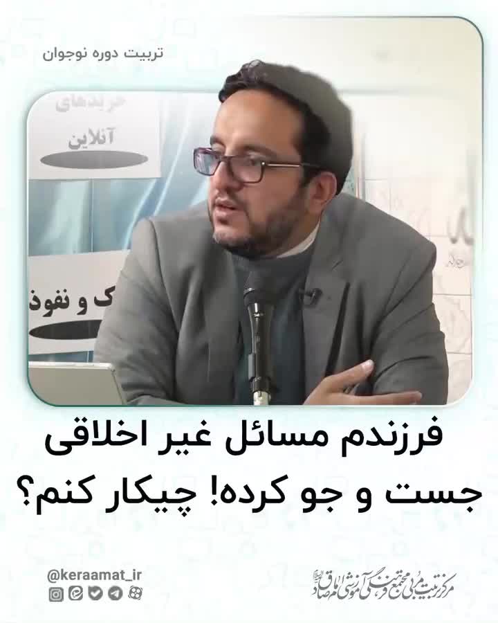 . 📍فرزندم مسائل غیر اخلاقی جستجو کرده😳چیکار کنم؟ ◀️اگر فهمیدیم که فرزند نوجوانمان یک موضوع غیر اخلاقی را جستجو کرده است چه کار کنیم؟ ❓آیا او را بزنیم یا گوشیاش را بگیریم؟ ❌خیر! اینها بدترین کارهای ممکن است! اینجا جایی است که خانواده باید نقش محدود کننده خود را در خفا به فرزندش یادآوری کند. پدر با پسر و مادر با دختر، وارد چنین گفتگویی شوند: ✅«دخترم این تلفن همراهی که برای شما گرفتم برای کارهای درسی و پیشرفت شماست و خیلی خوب است که از فضای مجازی استفاده میکنی. اما در این فضا یک سری تهدیداتی وجود دارد که ممکن است گوشیات و حتی ذهنت را آلوده کند و موجب شود که از درسهایت عقب بیفتی.» یعنی لازم است اقناعی و غیر مستقیم وارد گفتگو شویم. نکته مهم این است که نیازی به تندروی نیست. خیلی کوتاه در حد ۴-۵ دقیقه صحبت و بحث را تمام کنیم. 🔖آقای دکتر آل داوود. 📚تربیت دوره نوجوان ❓نحوه برخورد شما با این مساله در فرزندتان چگونه بوده؟ 📌ما در کرامت، برایتان از اندیشه های مختلف تربیتی می گوییم، چراکه نگاه نقادانه ی شما ارزشمند است. #استاد_آل_داوود #غیر _اخلاقی #جستجو #گفتگو #تند_روی #بحث #گوشی #ذهن #درس #پیشرفت #خفا #پنهان_کاری #تهدید