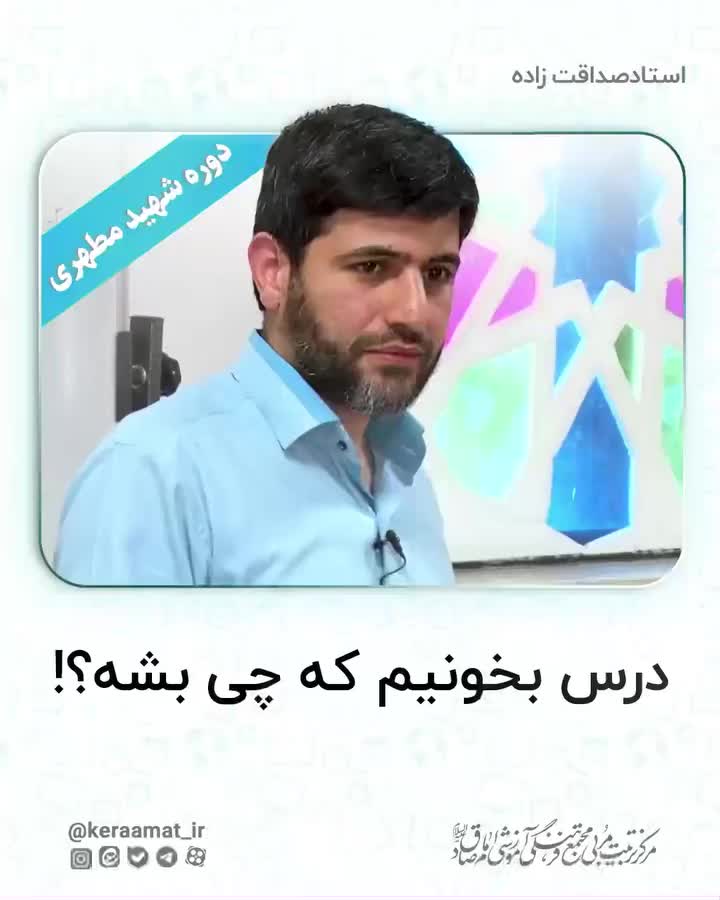 . 📍درس بخونیم که چی بشه؟ فرض کنید، من دارم راه میروم یا غذا میخورم. این کار خوب است یا نه؟ برای یافتن پاسخ این سوالات و سوالات دیگری مانند اینکه، درس میخوانم، دانشگاه میروم، میخوابم و حتی نماز میخوانم باید از خود بپرسیم، «که چی بشه؟» یعنی هدفمان از انجام این کارها چیست؟ اما یک جایی به این میرسیم که دیگر جا ندارد بپرسیم که چی بشه و آنجا خداست. چون خدا خودش اول و آخر است. مثل آب که خیسی جزئی از وجودش است، خداوند هم ذاتا غایت است. اگر برای انجام کاری، آنقدر رفتیم تا رسیدیم به خداوند، آن کار خوب است و همه کارهای قبلی هم خوب میشود. اما ما معمولا به جایی میرسیم که دیگر هدفی نداریم جز اینکه بگوییم دلم خواست! هدف آخر ما هر چه بود، آن خدای ماست. حال گاهی خدای انسان، خدای حقیقی است و گاهی خداهای خود ساخته. 🔖دکتر صداقت زاده. ⛔️ مهلت ثبت نام: ۱۸خرداد 🗓 زمان: ۵شنبه ها، ساعت ۸ تا ۱۲ 📌 مکان: شهرک قدس، هرمزان، آمفی تئاتر دبیرستان دخترانه امام صادق (ع) ⭕ هزینه دوره ۳۴۰ تومان 🌐 اطلاعات بیشتر و ثبت نام در www.keraamat.ir 📌ما در کرامت، برایتان از اندیشه های مختلف تربیتی می گوییم، چراکه نگاه نقادانه ی شما ارزشمند است. #دکتر_صداقت_زاده #هدف #درس #خدا #حقیقت #خود_ساخته #غذا #خیس #آب #غایت #دانشگاه