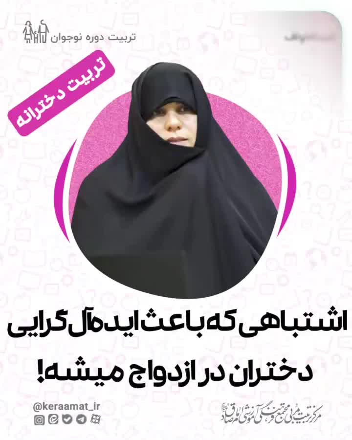 . ⭕ *ثبت نام دوره تربیت دخترانه* لینک ثبت نام در بایو پیج قرار دارد 🔰 اشتباهی که باعث ایده آل گرایی دختران در ازدواج میشه! 🔻دختر نوجوان ما وقتی راجع به ایدهآلهای همسر آیندهاش صحبت میکند، راجع به کسی صحبت میکند که ما نام آن را یک موجود فضایی میگذاریم! مثلاً رمان نوشته میشود راجع به زندگی شهدا. اما باید به نوجوان گفته شود که این رمان همه زندگی آن شهید نیست. ✴️ این رمان تنها رئوس و نقاط اوج شخصیت آن شهید است. آن شهید قطعا نقاط فرود هم داشته، قطعا در صحنههایی با همسر خود اختلاف نظر و بگو مگو هم داشته است. یکبار همسر شهیدی نقل میکرد، از نماز شبهای شهید، از من پرسیدند، گفتم ایشان اینقدر مشغول کارهای جهادی بودند، رمقی برای بیدار شدن نداشتند و حتی اگر من برای نماز صبح بیدارشان نمیکردم، برای نماز صبح هم خواب میماندند. این قسمت خاطره همیشه از خاطرات این شهید حذف شده. ❓ چرا این قسمت ها را حذف میکنیم تا یک تصویر ایده آل از شهدا در ذهن دخترانمان بسازیم؟ تا انتظار دختر نوجوان ما از همسر حزب اللهی و در مسیر تربیتش این باشد که اگر همسرم خطایی بکند، همه چیز تمام میشود؟ ☑️ این ایده آل گرایی، آفتی است که در ما ایجاد شده است. "خانم دکتر لواف" 🌐 جهت اطلاعات بیشتر و ثبت نام به بایو پیج کرامت مراجعه کنید ⚠️ ما در کرامت، برایتان از اندیشه های مختلف تربیتی می گوییم، چراکه نگاه نقادانه ی شما ارزشمند است. ⚠️ ✅@keraamat_ir #کرامت #تربیت #دخترانه #دختر #دختران #لواف #دکتر_لواف #دوره_آموزشی #تربیت_دخترانه