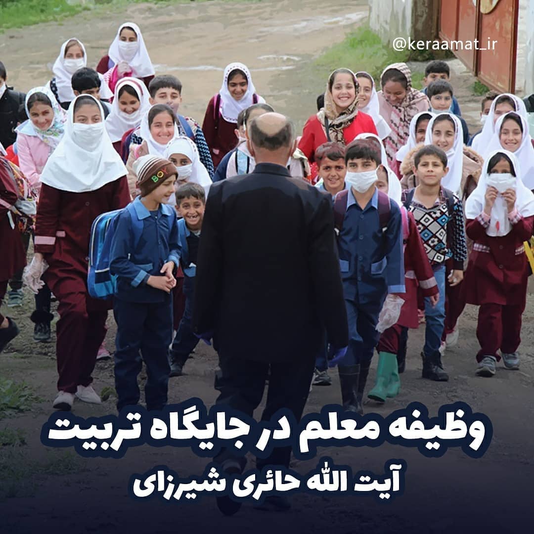 🔻وظیفه معلم در جایگاه تربیت . 🔖آیت الله حائری شیرازی 📚تربیت دینی کودک، ص ۸۵ . 💬نظراتتون رو با ما به اشتراک بذارید