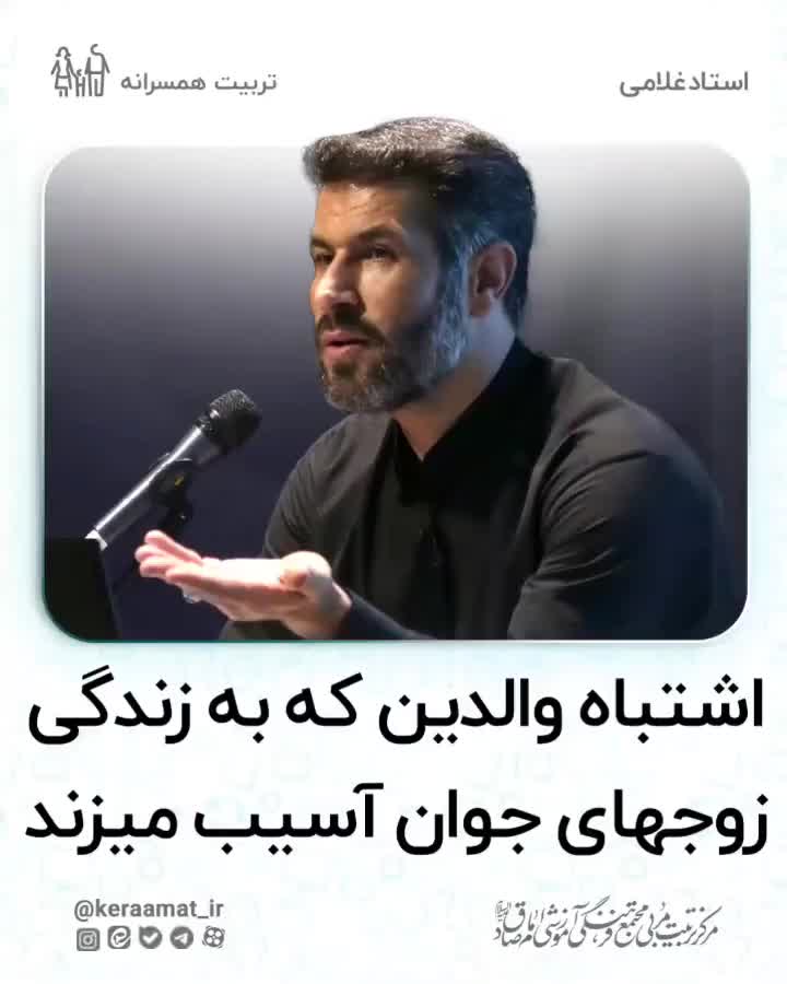 🔻میزان اهمیت به خانواده بر اساس روایات . ایمان یک انسان در تقابل رفتاری او با خانواده مشخص میشود.🤗 حضرت رسول (ص) میفرمایند: پنج خصلت از نشانه رفتار انبیاست؛ مراقبت از نماز، غیرت، سخاوت، شجاعت و معاشرت زیاد با خانواده. مثلا پدرهای دختردار، آخرین باری که دوتایی با دخترتان به خرید یا گردشی رفتهاید چه زمانی بوده است؟👧🧔 این موضوع یعنی سطح تربیت با خانواده شروع میشود. جنس یک مربی و پدر و مادر خوب، جنسی که بین مثلا بین طلبه بودن و بابای دختر بودنش همخوانی وجود دارد.😍😎 . . . ⭕ برای ما بنویسید: چند دقیقه در روز خانوادگی دور هم جمع میشید و چه کارهای مشترکی انجام میدید؟ . . . 🔖استاد برمایی . 💬انتقادات و پیشنهاداتتون رو با ما به اشتراک بذارید . در شبکه های دیگر بما بپیوندید . 👈 پیام رسان بله: https://ble.ir/keraamat_ir 👈 پیام رسان ایتا: eitaa.com/keraamat_ir 👈 سایت آپارات: https://www.aparat.com/keraamat_ir