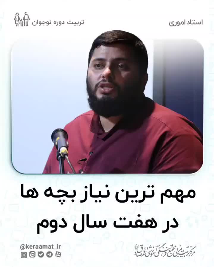 🔻مهمترین نیاز بچه ها در هفت سال دوم . اگر در هفت سال دوم آزادی بیش از حد به بچهها داده شود و نیاز عبد بودن آنها تامین نشود، نباید انتظار نتیجه درست در تربیت داشته باشیم. بچه ها در ۷ سال دوم باید متوجه اقتدار پدر شوند. این نیاز بچه است که ببیند پدر خانواده مقتدر و مادر محبوب است، پدر محبوبیت مادر و مادر اقتدار پدر را تثبیت میکند. اینها در تضاد با فهم بچهها نیست بلکه مطالبه درونی آنهاست. بچه در هفت سال دوم نیاز به امر و نهی دارد و آن را طلب میکند. اما لازم است این امر و نهی توسط پدر انجام شود و مادر باید مظهر محبوبیت در خانه باشد و محبت را توسعه دهد. . . . ⭕چالش اصلی شما در هفت سال دوم برای تربیت فرزندتان چه بوده و هست؟ . . . 🔖استاد اموری. 📚تربیت مشاور و پشتیبان تربیتی پیوند. ترم مقدماتی . 🔻ما در کرامت، برایتان از اندیشه های مختلف تربیتی می گوییم، چراکه نگاه نقادانه ی شما ارزشمند است.🔻 . . . . . #اموری #عبد #مولا #شعبان #امام_حسین #پدر #اقتدار #خانواده #استقلال #آزادی #کرامت