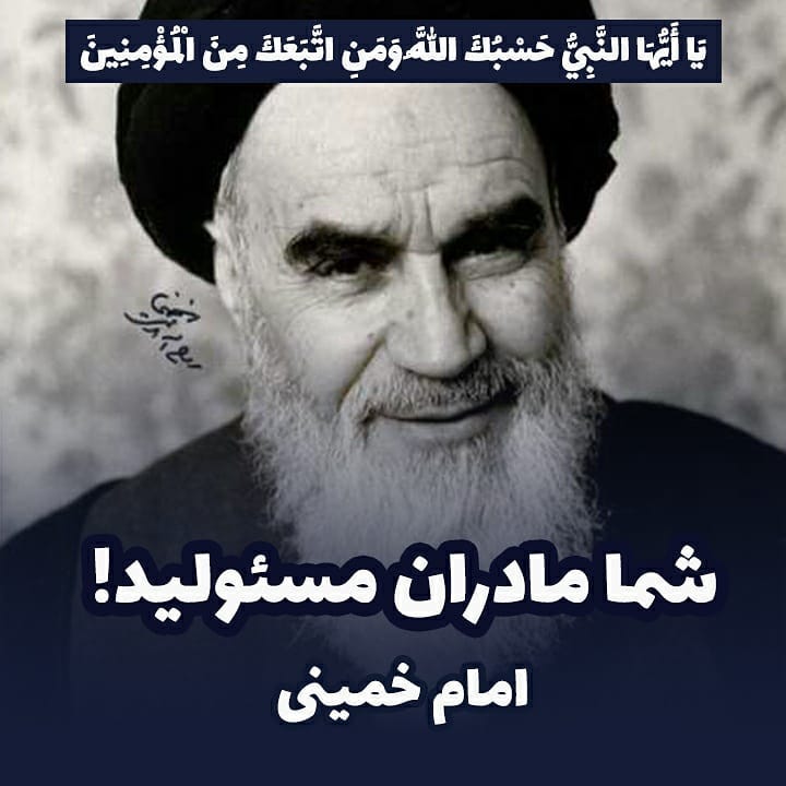 بانوان محترم! همه مسئولیم. شما مسئول تربیت اولاد هستید؛ هرچند همه مسئول تربیت اولاد هستیم ولی دامن مادر برای اولاد،بهترین مکتب است. مسئولید که در دامن هایتان اولاد متقی بار بیاورید،شما می توانید بچه هایی تربیت کنید که حفاظت از آمال انبیاء بکنند. صحیفه امام خمینی ج7، ص503