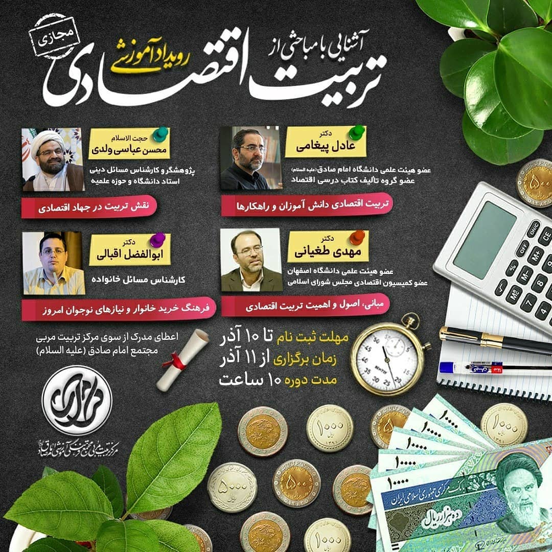 📊💰 *رویداد مجازی تربیت اقتصادی* جهت کسب اطلاعات بیشتر میتوانید در پیام رسان بله، ایتا یا واتساپ به شماره 09365795598 پیام دهید.