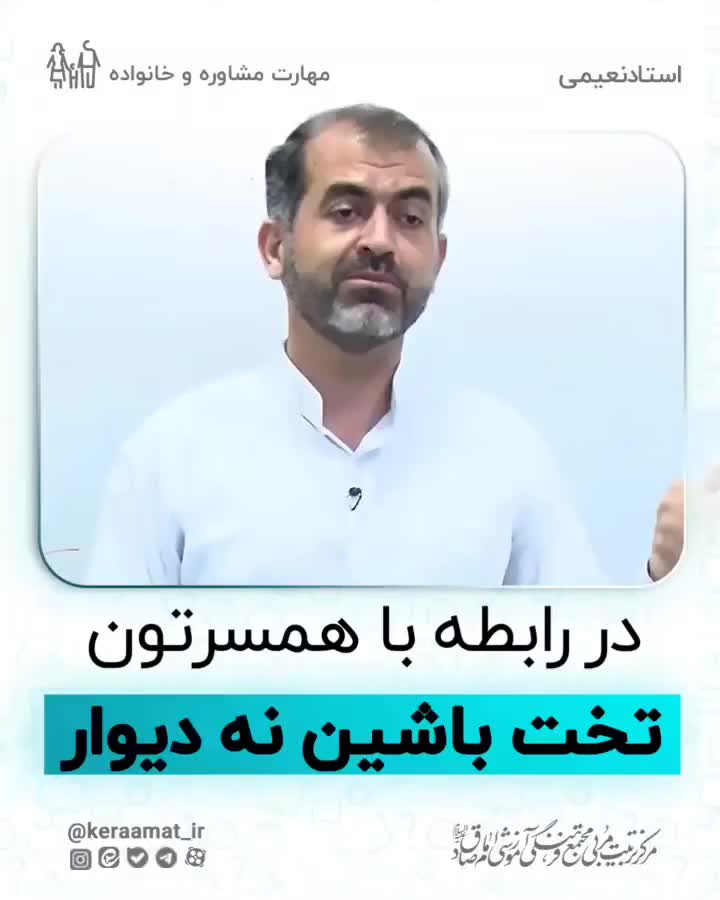 🔻در رابطه با همسرتون تخت باشید نه دیوار . یکی از تکنیک ها در حوزه خانواده تخت بودن است. یعنی اگر من توپی را به شدت به دیوار پرتاب کنم توپ به سمت من بر میگردد. حال اگر من توپ را روی تخت پرتاب کنم ،چه میشود؟ کمی حرکت میکند و روی تخت میایستد و ساکن میشود. بسیاری از تنشیهای زناشویی به این دلیل است که اگر کسی توپی را پرتاب میکند، طرف مقابل دیوار است و توپ را برمیگرداند. تخت نیست که انرژی آن را بگیرد. مثلاً اگر مرد با ناراحتی از بیرون به داخل خانه میآید و چیزی را بیان میکند، خانم اگر میخواهد تخت عمل کند، میتواند بگوید امروز روز خسته کنندهای را داشتهای. کمی بنشین تا برایت چای بیاورم. اما اگر مثل دیوار عمل کند بحث ادامه پیدا میکند. . . . ⭕برامون بنویسید: از ابتدای ازدواجتون در مقایسه با الان، چقدر مدیریت روابطتون بهتر شده و چرا؟ . . . 🔖دکتر ابراهیم نعیمی 📚تربیت مشاور و پشتیبان تربیتی. ترم دو. مهارتهای مشاوره خانواده 🔻ما در کرامت، برایتان از اندیشه های مختلف تربیتی می گوییم، چراکه نگاه نقادانه ی شما ارزشمند است.🔻 . . . . . . . . . #نعیمی #خانواده #مدیریت #بلوغ #بلوغ_عاطفی #مشاوره_خانواده #مشاور #کرامت #تربیت_اسلامی