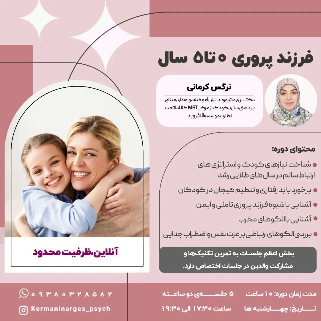 نرگس کرمانی"دکتری مشاوره" 🌾رواندرمانگر و مشاوره فرزند پروری 🎓 دانش آموخته منتالیزیشن از کانادا، SDTBM