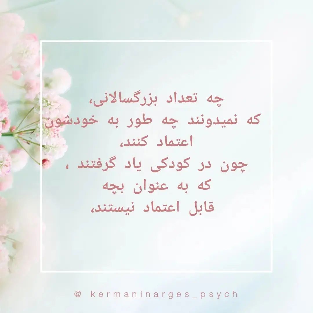 شاید اولین چیزی که بعد از شنیدن این جمله به ذهنمون برسه اینه که خب، من که به بچم اعتماد دارم، پس این شامل حال من نمیشه! حالا سوال اینجا است که آیا این قدر اعتماد داری که اگه تا آخر بشقابش را نخورد تصور نکنی نمیفهمه واقفا گرسنه هست یا نه! آیا اون قدر اعتماد داری که لازم نباشه تایم دستشویی رفتن را مرتب بهش گوش زد کنی؟ آیا اون قدر اعتماد داری که خودش میفهمه کی باید بره بخوابه! دائما فکر نکنی آیا امروز، میوه خورد، گوشت خورد؟ گروههای مختلف غذایی بهش رسیده؟ اون قدر به نوجوانتان اطمینان داری که بتونی بهش اجازه بدی بره با دوستاش بیرون، و بتونه از خودش مراقبت کنه؟ اصلا اون قدر اطمینان داری که صبح که از خواب بیدار شد و گفت صبحانه نمیخوام، بهش اعتماد کنی که اگه گشنه باشه خودش میره یه املت درست میکنه و نوش جان میکنه؟ تخم مرغ درست کردن فکر کنم حداقل از ۵ سالگی دیگه امکان پذیر باشه، یا نه از اون والدینی هستیم که تا چهل سالگی هم باید زنگ بزنیم و جزئیات روزانه اش را سوال کنیم، انگار نه انگار که خودش میتونه مدیریت کنه! تو کامنت برام بنویسید که کجاها بوده که اعتماد کردن به بچه ها سخت بوده، خیلی سخت! #والدین_موفق #روانشناسی #روانشناسی_کودک #اعتماد #ارزش #انگیزشی #شاد #آرامش #موفقیت