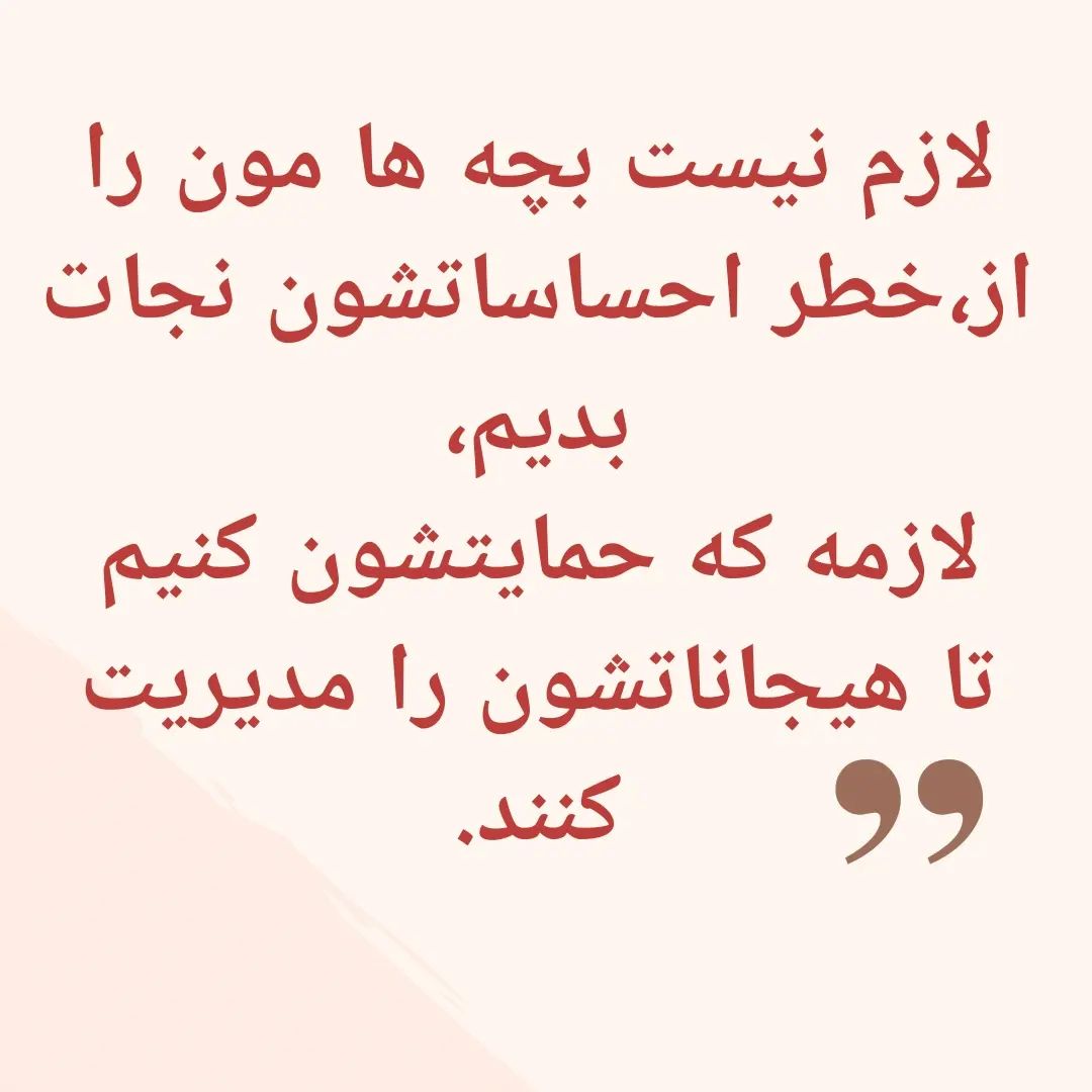 چه قدر با این جمله موافقید؟ دیدید وقتی میبینیم ناراحته به جای همراهی با احساس در پی حل مسئله و طراحی راه حل هستیم! چه قدر حاضریم کنارش طاقت بیاریم؟ من هستم و میتونی آزرده ، ترسیده یا خشمگین باشی! انگار فقط و فقط احساس شادی و رضایته که از نظر ما پذیرفته شده است و احساسات دیگه برای ما معنی این را داره که حتما والد بدی بودیم! #احساسات #احساسی #والدگری #والدین_موفق #والدین_آگاه #غمگین #کنترل_خشم #توانمندسازی