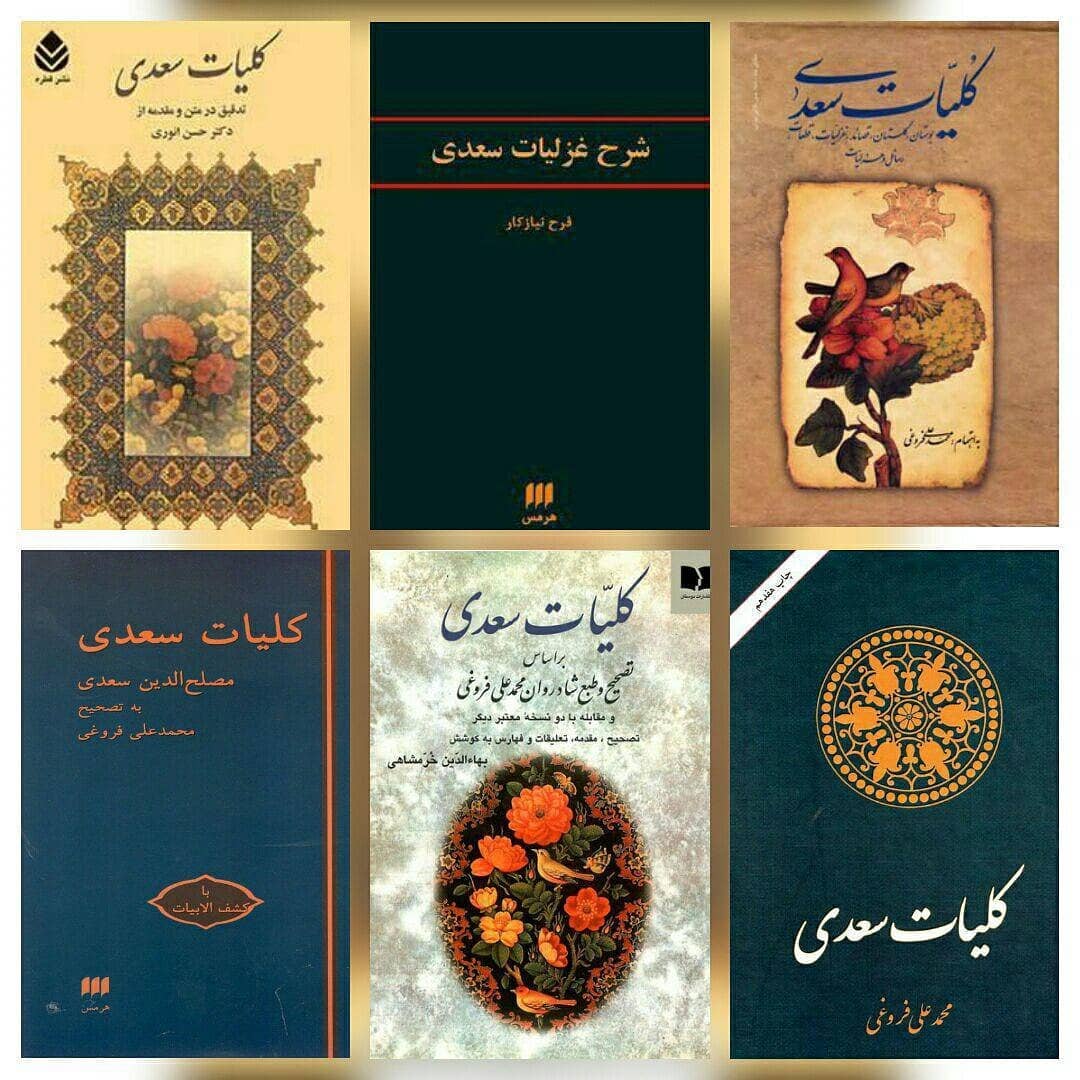 سعدیا!👤 از تو چگونه بخوانیم و چه بخوانیم؟🤔 کلیّات سعدی کلیّات، آن است که همۀ آثارِ سعدی را در خود دارد. یعنی در یک کتاب هم بوستان و گلستان هست، هم غزلیات و قصائد و رباعیات و مفردات و رسائلِ نثر. اگر میخواهید یک کلیّات سعدی خوب بخرید، چند گزینه هست. ✔یکی همان تصحیح مرحوم محمدعلی فروغی است. البته چاپِ اصلی این اثر را امروز از انتشارات امیرکبیر میتوانید بخرید.(چاپهای انتشارات ققنوس و هرمس هم خوب است). ✔ بهاءالدّین خرمشاهی، همین تصحیح را با رفع مقداری از اغلاط و افزودنِ چند فهرستِ کارآمد و مقداری توضیحات توسطِ «انتشارات دوستان» به چاپ رساند، که در مجموع بهتر از چاپ فروغیست. ✔این را هم بگویم که اگر به دنبالِ هزلیات سعدی میگردید، این بخش فقط در چاپِ انتشارات زوّار هست. ✔کلیات سعدی دیگری هم دکتر حسن انوری توسط نشر قطره منتشر ساخته است که یکی از محاسنش دارا بودن کشفالابیات همۀ اشعارست. ✔دکتر مظاهر مصفّا هم کلیات سعدی دارد، که انتشارات روزنه آن را چاپ کرده و از نظر ظاهری بسیار شکیل و خوشدست است، (معنی کلماتِ دشوار نیز در پایین متن آمده) هیچ یک از چاپهای بالا دارای توضیحات اشعار نیست. (مگر در موارد معدودی که گفته شد). غزلیات سعدی اگر میخواهید غزلها را به صورتِ جداگانه داشته باشید، غزلهای سعدی، به تصحیح دکتر غلامحسین یوسفی را انتشارات سخن چاپ کرده است، و عالی است. بوستان و گلستان ✔مشهورترین چاپ این دو کتاب، تصحیح مرحوم دکتر یوسفی است (انتشاراتِ خوارزمی). این را هم بگویم که با وجودِ شهرتِ فراوان، این تصحیح، صورتِ نهایی نیست و هنوز هم این دو کتاب از تصحیح و شرح بینیاز نیست. ✔اگر میخواهید توضیحاتِ عباراتِ گلستان همان پای صفحه درج شده باشد، شرحِ گلستانِ خطیبرهبر (انتشارات صفیعلیشاه) را توصیه میکنم که با فونت درشت چاپ شده و برای چشمهای ضعیف آسانخوانترست. ✔مرحوم محمد خزائلی هم شرح مشهوری بر گلستان دارد که در جایِ خود بسیار سودمند است. ✔استاد جویا جهانبخش هم گزیدۀ گلستان را شرح کرده که در قطع جیبی و همراه با فایل صوتی به وسیلۀ نشر معین منتشر شده. 🎀 اگر این کتاب ها را نداشتید و خواستید ما در خدمتیم🎀 این پست با استفاده از مطالب رضا ضیاء در نشریه کرگدن نوشته شده با سپاس از این نشریه معتبر واتس اپ و تلگرام و تماس ۰۹۹۱۲۷۹۴۵۷۸