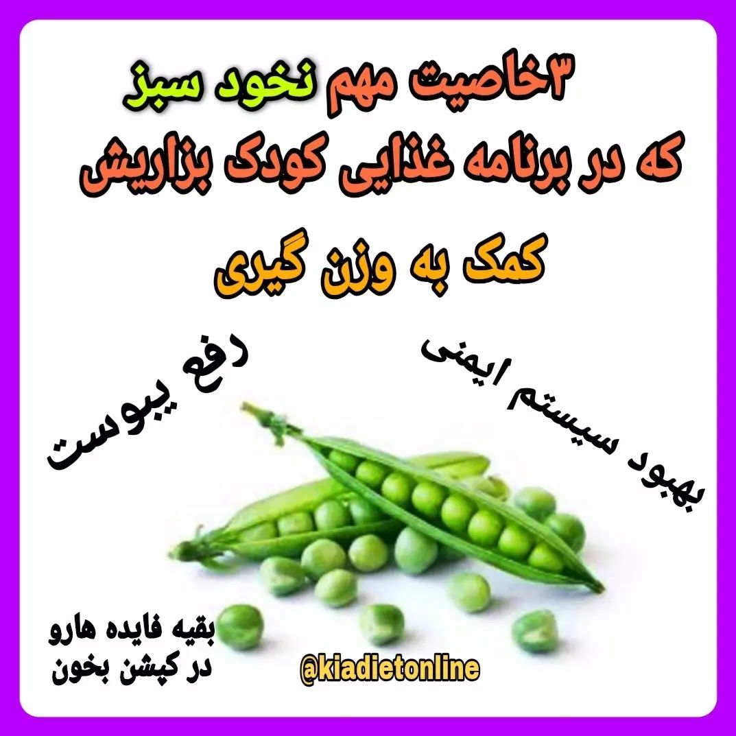 🔴کوچولو تون نخود فرنگی میخوره ⁉️ 🔴حتما از اول شروع غذای کمکی ، پوره نخود فرنگی هم بهش بدین. ❌❌یک وعده 80 گرمی (پخته شده) حاوی: 63 کیلو کالری / 263 کیلوجات پروتئین 5.4 گرم 1.3 گرم چربی 8.0 گرم کربوهیدرات 4.5 گرم فیبر 184 میلی گرم پتاسیم 104 میلی گرم فسفر 1.2 میلی گرم آهن 13 میلی گرم ویتامین C ❌❌از نظر تغذیه، تفاوت کمی بین نخود فرنگی تازه و منجمد وجود دارد، بنابراین منجمد یک جایگزین مفید است. 🔴🔴5 مزیت اصلی نخود فرنگی برای سلامتی چیست؟ 1. منبع خوب نشاسته و فیبر بودن ، نخود فرنگی را ضد یبوست کرده است.البته بهتره خوب بپزید. 2. نخودفرنگی از حبوبات پرکالری هاست و با شاخص گلیسمی پایین (GI) و حاوی نشاسته به شکل آمیلوز هست. 3.نخودفرنگی سرشار از فیبر است که هم از سلامت گوارش حمایت می کند و هم به میکروب های مفید روده که نقش مهمی در سلامت ما دارند، تقویت می کند و باعث بهبود ایمنی بدن می شود. 4. نخود فرنگی با داشتن منیزیم، پتاسیم و کلسیم و وبتامین سی و پلی فنول ها از عملکرد قلبی عروقی حمایت می کنند و فیبر محلول سطح کلسترول، به ویژه کلسترول LDL را کنترل می کند. 5. نخود فرنگی به دلیل سطوح بالای آنتی اکسیدانی و ساپونین به محافظت در برابر برخی از انواع سرطان کمک می کند. ممنون که با لایک و سیو شیر کمک می کنید اطلاعات به دست دوستان بیشتری برسد♥️ @kiadietonline ➖➖➖➖➖➖➖➖➖➖➖➖➖ 📞 02188563201 📱 09021888035 تهران، شهرک غرب📍 ➖➖➖➖➖➖➖➖➖➖➖➖➖ 🎀خدمات ما : ارائه مشاوره حضوری وآنلاین برای اضافه وزن،لاغری ، بیماریها(قلبی، دیابت، کلیوی،کید چرب، فشارخون، کنسر، آلزایمر، یبوست، گیاهخواری و..) ، چاقی کودکان،رشدقدی، کم وزنی ، بد غذایی 🔻Foreign patients are admitted ➖➖➖➖➖➖➖➖➖➖➖➖➖ #افزایش_قد #چاقی#برنامه_غذایی #افزایش_وزن #تغذیه_تکمیلی #نخودسبز #دکتر_کیا#مشاور_تغذیه_کودکان #لاغری#چاقی_کودک #کاهش_وزن #رژیم #رشدکودک#غذای_کودک #بدغذایی #چاقی_کودکان#لاغری #قدکودکان #نخودفرنگی