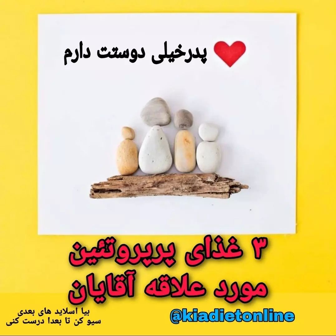 ☆•❈ 💙💜به پاس قدر دانی از همه پدران ، این فرشتگان پرتلاش که عاشق گوشت و کباب. هستن. امروز ۳ غذای پر پروتئین و خوشمزه گذاشتیم.فردا حتما یکی اش امتحان کنید. ⭕راستی پدر شما هم از ماکارونی خیلی خوشش نمیاد ⁉️ 🧡 پدرا الگوی فرزندان مخصوصا پسرا هستین. خیلی مراقب خودتون باشین. ۲۵ بهمن۱۴۰۰ #روزپدرمبارک @kiadietonline ➖➖➖➖➖➖➖➖➖➖➖➖➖ 📞 02188563201 📱 09021888035 تهران، شهرک غرب📍 ➖➖➖➖➖➖➖➖➖➖➖➖➖ 🎀خدمات ما : ارائه مشاوره حضوری وآنلاین برای اضافه وزن،لاغری ، بیماریها(قلبی، دیابت، کلیوی،کید چرب، فشارخون، کنسر، آلزایمر، یبوست، گیاهخواری و..) ، چاقی کودکان،رشدقدی، کم وزنی ، بد غذایی 🔻Foreign patients are admitted ➖➖➖➖➖➖➖➖➖➖➖➖➖ #افزایش_قد #چاقی_ #پروتئین #شام_خوشمزه #لاغری_کودک#افزایش_وزن #Nutritionist#متخصص_تغذیه#مشاور_تغذیه_کودکان #پـسټ_جدید#لاغری#چاقی_کودک#کاهش_وزن#غذای_پروتئینی#کباب#عضلات #شام_پسرانه