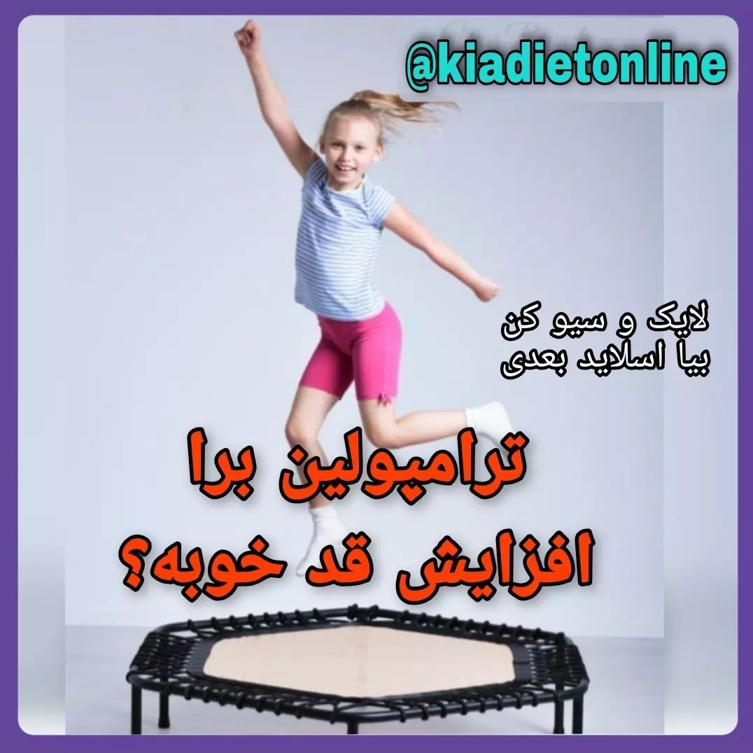 شمام هم برا بچه ها ترامپولین خریدین تو خونه ؟؟ همه ورزش ها برا سلامتی مفید هست ولی بعضی ها برا رشد قدی موثر ترن. ❤💙حالا شما بنویسید که پس ترامپولی برا رشد قد موثر هست یا نه⁉️ 😊 @kiadietonline ➖➖➖➖➖➖➖➖➖➖➖➖➖➖ 📞 02188563201 📱 09021888035 تهران، شهرک غرب📍 ➖➖➖➖➖➖➖➖➖➖➖➖➖➖➖ 🎀خدمات ما : ارائه مشاوره حضوری وآنلاین برای اضافه وزن،لاغری ، بیماریها(قلبی، دیابت، کلیوی،کید چرب، فشارخون، کنسر، آلزایمر، یبوست، گیاهخواری و..) ، چاقی کودکان،رشدقدی، کم وزنی ، بد غذایی 🔻Foreign patients are admitted ➖➖➖➖➖➖➖➖➖➖➖➖➖➖➖ #افزایش_قد #چاقی_ #لاغری_کودک#افزایش_وزن #Nutritionist#مشاوره_آنلاین#مشاور_تغذیه_کودکان #لاغری#چاقی_کودک #کاهش_وزن #رژیم #ترامپولین #تغذیه_کودک #شـب_چهارشـنـبه #غذای_کودک #رشدقدی #Drkia