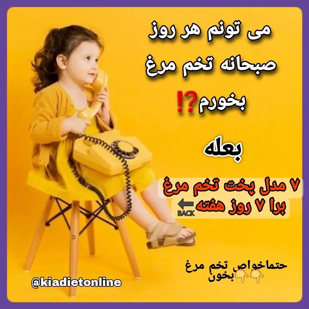 ❤🧡خیلی از مامان ها سوال داشتین که اشکال نداره هر روز صبحانه تخم مرغ بخوره⁉️ ⭕تخم مرغ غذای کاملی هست که دارای انواع ویتامین های لازم ما بوده و اسید های آمینه آن، بیشترین تطابق رو با نیاز های بدن ما داره. حتی بیشتر از گوشت ها و شیر و ... ⭕پس از نظر ارزش غذایی بسیار مفید برای رشد کودکان هست و ایرادی نداره هر روز یکعدد بخوریم . ⛔فقط نکته اینکه افرادیکه کلسترول خون بالا دارن ، یکم احتیاط کنند و ضمنا تنوع غذایی هم خوبه. 🎁براتون ۷ مدل پخت تخم مرغ برا ۷روز هفته گذاشتم که متنوع باشه و کودک خوشش بیاد. 🤩 ⭕لطفا شما هم روش های خودتون برامون بنویسد 🙏🙏 ۱۸ بهمن۱۴۰۰ ین پست می تونه برای دوستاتون مفید باشه براشون ارسال کنید، ممنونم که سیو و لایک می کنید♥️ @kiadietonline ➖➖➖➖➖➖➖➖➖➖➖➖➖ 📞 02188563201 📱 09021888035 تهران، شهرک غرب📍 ➖➖➖➖➖➖➖➖➖➖➖➖➖ 🎀خدمات ما : ارائه مشاوره حضوری وآنلاین برای اضافه وزن،لاغری ، بیماریها ، چاقی کودکان،رشدقدی، کم وزنی ، بد غذایی 🔻Foreign patients are admitted ➖➖➖➖➖➖➖➖➖➖➖➖➖ #افزایش_قد #چاقی_ #لاغری_کودک#افزایش_وزن #Nutritionist#مشاور_تغذیه_کودکان #لاغری#چاقی_کودک #کاهش_وزن #رژیم #فـــوروارد #رشدکودک#صبحانه_وزنگیری #صبحانه#تغذیه_کودک #غذای_کودک#تخم_مرغ#ڧـروشـگاه#املت#چاقی_کودکان#drkia #قدکودکان