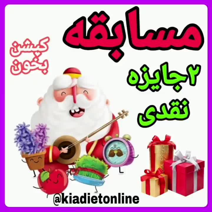 📣📣🎁🎁مسابقه، جایزه، عیدی 🎁🎁📣📣 ❤از قدیم گفتن عیدی و عیدیش . ما هم میخوایم به دوستان مون عیدی و جایزه بدیم. اونم جایزه نقدی ۳میلیون و ۲ میلیون ریالی به ۲ نفر. 🔴 شرایط شرکت در مسابقه : ۱- این پست رو لایک کنید و جواب سوالات رو بنویسید. ■سوال اول : این طرح بشقاب سالم از چه سالی بکار میره؟ ■سوال دوم : طبق نتایج با این بشقاب ، در ماه چند کیلو وزن کم میشه؟ ۲- دوتا پست مون که گفته شده رو حتما ببینید که جواب سوال ها هست و لایک کنید . ۳- دو نفر رو هم تگ کنید.❤❤ ⭕ قرعه کشی روز ۵شنبه ، بین فالوور های عزیز که جواب صحیح رو گذاشتن ، انجام خواهد شد و جایزه اهدا خواهد شد. 🎁🎁 @kiadietonline ➖➖➖➖➖➖➖➖➖➖➖➖➖➖ 📞 02188563201 📱 09021888035 تهران، شهرک غرب📍 ➖➖➖➖➖➖➖➖➖➖➖➖➖➖➖ 🎀خدمات ما : ارائه مشاوره حضوری وآنلاین برای اضافه وزن،لاغری ، بیماریها(قلبی، دیابت، کلیوی،کید چرب، فشارخون، کنسر، آلزایمر، یبوست، گیاهخواری و..) ، چاقی کودکان،رشدقدی، کم وزنی ، بد غذایی 🔻Foreign patients are admitted ➖➖➖➖➖➖➖➖➖➖➖➖➖➖➖ #افزایش_قد #چاقی_ #لاغری_کودک#افزایش_وزن #Nutritionist#مشاور_تغذیه_کودکان #لاغری#چاقی_کودک #کاهش_وزن #رژیم #جایزه #تغذیه_کودک #غذای_کودک#مسابقه #کادو #چاقی_کودکان#drkia #قدکودکان #عیدی