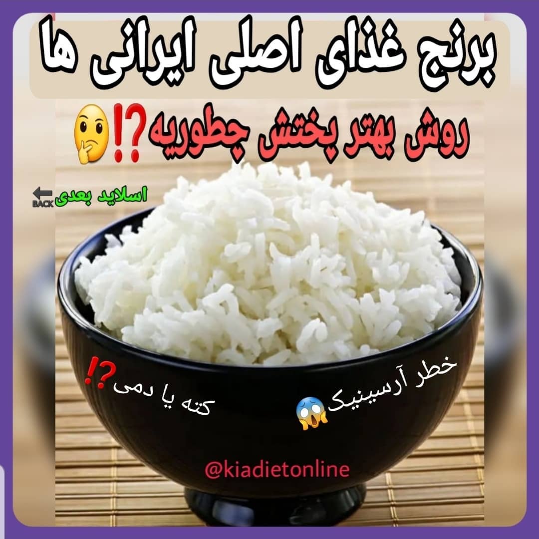 📣شما برنج چطوری می پزین معمولا⁉️ برنج قوت غالب ما ایرانی هاست و باید بلد باشیم که بهترین روش پخت اون چجوریه که ویتامین هاش یکم بیشتر حفظ بشه و ضمنا آرسنیک جمع شده در این دانه ها ، کمتر وارد بدن مون بشه. ⛔آرسنیک موجود در برخی برنج های ایرانی و بویژه برنج های هندی ، در اثر استفاده روزانه مداوم خطر سرطانزایی و بیماری های دیگه داره.خصوصا در مورد مادران باردار بیشتر هم رعایت بشه که باعث سقط و...میشه. ۲۴ آذر ۱۴۰۰ #مشاور_تغذیه #برنج #پلو #آرسنیک #سرطان #چاقی_کودک #لاغری_کودک #افزایش_قد_کودک #Drkia