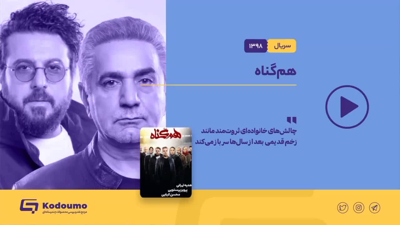🔻همگناه داستان خانوادهای ثروتمند را روایت میکند که هریک از اعضای آن با چالشی روبهروست. این سریال مسائلی بهظاهر جنجالی مانند رابطۀ پسری جوان با زنی میانسال، اعتیاد، نحوۀ مواجهه با افراد ترنس در جامعه، بارداری از طریق رحم اجارهای و … را در خود گنجانده است! ⚠️ تماشای این سریال در کنار نوجوانان نیازمند فراهمکردن شرایطی ویژه برای گفتوگو پیرامون ناهنجاریها و چالشهای مطرحشده در سریال است و تماشای آن بدون همراهی فعال بزرگسالان توصیه نمیشود. 📌 ارزیابی کامل سریال همگناه رو در «کدومو» بخونین و شما هم ارزیابی خودتون رو بنویسین! 📌 کدومو؛ همپای خانوادهها @Kodoumo #هم_گناه #فیلم #سریال #کدومو #همگناه #فیلیمو