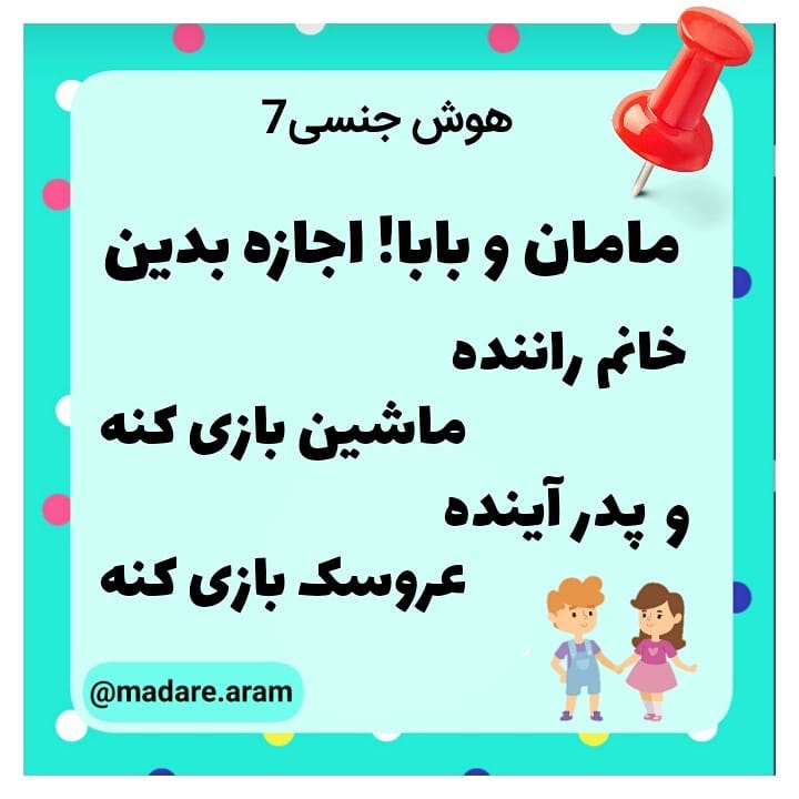 👇درباره ی سؤالات جنسی بچه ها: 🌺بچه ها سؤال های جنسی و مربوط به آن می پرسند، نظیر: من از کجا آمدم؟ به خصوص امروزه این گونه سؤال های بچه ها زیاد شده است. 🌺 بچه ها چی می بینند و چی می شنوند؟ صحنه های ماهوارها و تلویزیون کنجکاوی بچه ها را زیاد کرده، یک دلیل دیگر سؤال های زیاد بچه ها این است که ما از زندگی طبیعی دور شده ایم، بچه های قدیمی این مشکلات را نداشتند الآن هم بچه های روستا این مشکلات را ندارند چون از وقتی خودش را شناخته همه چیز را دیده و هیچ چیز برایش عجیب و غریب نیست ولی بچه های ما هیچ چیز ندیدند در نتیجه همه چیز برایشان ایجاد ابهام می کند. 🌺 وقتی کودک از شما سؤال می کند، بهم نریزید و هول نکنید، نظر خودش را بپرسید و ببینید که چه قدر می داند، بعد توضیحی که می خواهید بدهید در حد فهم کودک و ساده و کوتاه باشد. اصلا برای کودک توضیح اضافه ندهید. خیلی ساده و در حد فهم کودک صحبت کنید. به هیچ وجه دروغ نگویید. پاسخ بچه ها را با دروغ ندهید بلکه صحیح و ساده پاسخ بدهید. 🌺 مادری می گفت فرزندم از من پرسید که من کجا بودم، از کجا آمدم؟ من هم گفتم تو زیر مانتوی من بودی دکمه اش را باز کردم تو اومدی بیرون! می گفتند حالا هر خانمی که می بینه که شکمش بزرگه می ره مانتوشون رو باز کنه که نی نی داری بذار ببینم! به بچه ها دروغ نگویید. توضیح اضافه هم ندهید. 🌺اصولا در پاسخ به سؤال های بچه ها مواظب رفتار عاطفی خودتان باشید. به حالت های عاطفی خودتان در مقابل بچه ها آگاهی داشته باشید اگر از سؤال های جنسی آن ها بترسید، بلافاصله حس می کنند و این درک را پیدا می کنند که باز من یه سؤال نامربوط کردم و مامان به هم ریخت! در حالی که می توانیم خیلی خونسرد مثلا بگیم: نمی دونم بذار شب از بابا می پرسیم! اما هر وقت پاسخ گویی را به بعد موکول کردید، حتما برگردید به موضوع و به او جواب بدهید. 🌺وقتی کودک می پرسد: که من از کجا آمده ام، اولین کار شما این است که اول نظر خودش را بپرسید، «تو چی فکر می کنی؟»، تو توی شکم من بودی بعد دکتر باز کرد تو اومدی بیرون، آخه همه ی بچه ها باید یه مدت تو شکم ماماناشون باشن تا گنده بشن! نیایید توضیح بدید که حالا چه جوری باز کردن یک مادری به بچه اش گفته بود که شکم من رو از بالا تا پایین بریدن!!! بچه هم دچار عذاب وجدان شده بود که آخه مامان خیلی دردت اومد؟ من تو رو اذیت کردم؟ لازم نیست بگیم بریدن همین که بگیم باز کردن کافیه؛ و لازم نیست که تفاوت های زایمان طبیعی با سزارین را برای بچه توضیح بدیم؛ شکم منو باز کردن و تو اومدی بیرون همین. 👇ادامه در کامنت اول:👇