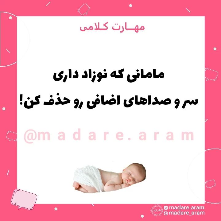 برای چی با #نوزاد حرف بزنیم؟ به نام خدا سلام🌹🌹🌹 💓خوبه که والدین با نوزاد صحبت کنن مخصوصا مادر. چون شنوایی نوزاد تحریک میشه. اما مثل همیشه اصل بر تعادله! قرار نیست بیست و چهار ساعته نوزاد رو بذاریم جلومون هی باهاش حرف بزنیم! طفلکی معذب بشه... نه. عادی هستیم عادی صحبت میکنیم تو خونه یه موقع هایی هم وقتی داریم باهاش بازی میکنیم دهانمون رو اروم باز و بسته میکنیم و صداها رو تفکیک میکنیم تا بتونه به خوبی ببینه و درون سازی کنه. اصلا دقت کرده باشید ما مامان ها به صورت غریزی همیشه این کارو میکنیم. 💓نوزاد صداها رو دریافت میکنه و هر صدایی رو بیشتر بشنوه متراکم میکنه و از هم جدا میکنه مثل صدای #مادر . کم کم صداهایی از خودش درمیاره و بعد از چندماه واژک ها رو میسازه و بعد صداها رو ترکیب میکنه و کلمات رو میگه💕 و اینجا پایه ی کلام شکل میگیره. 💓نوزاد داری؟ از طرف من محکم ببوسش😘 برای اینکه اینستا بفهمه این پیج مفیده حتما یک گل کامنت بذار🌷 #نوزادی #کودک #بچه #جنین #بچه_داری #مامان #بابا #مهارت #مهارتهای_ارتباطی #مهارت_زندگی #مهارتهای_ارتباطی #مهارت_آموزی #مهارت_ارتباطی #مهارت_پروری #مهارتهای_زندگی #مهارت_فردی #مهارت_کلامی #مهارتهای_کلامی #مهارتهای_اجتماعی #مهارتهای_فرزندپروری #مهارتهای_نوزاد #استاد_سلطانی #کودک_متعادل #رویکرد_هوش_متعادل #مادر_آرام
